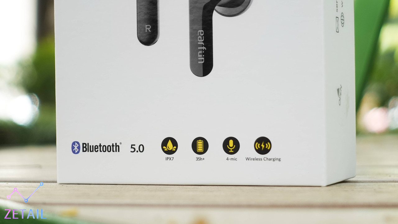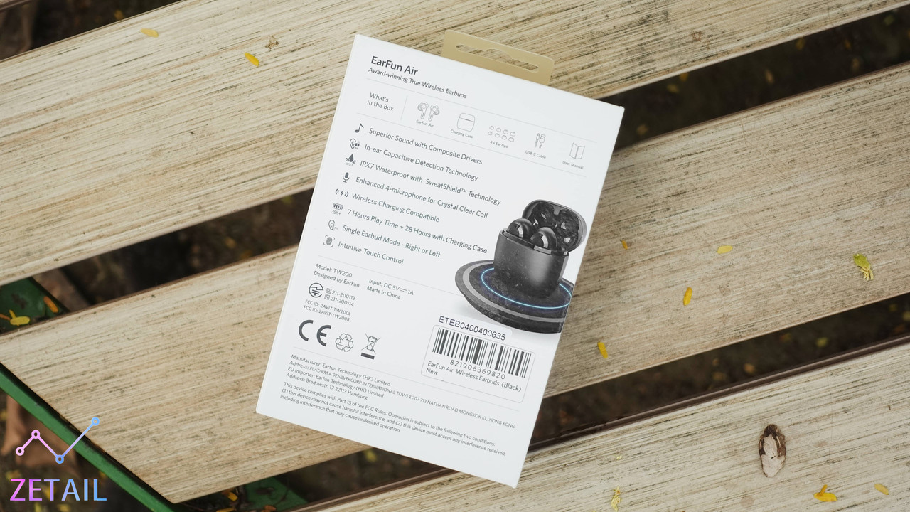▲ 背面有更詳細的特色與功能介紹,EarFun 也有列出盒裝內的內容物。