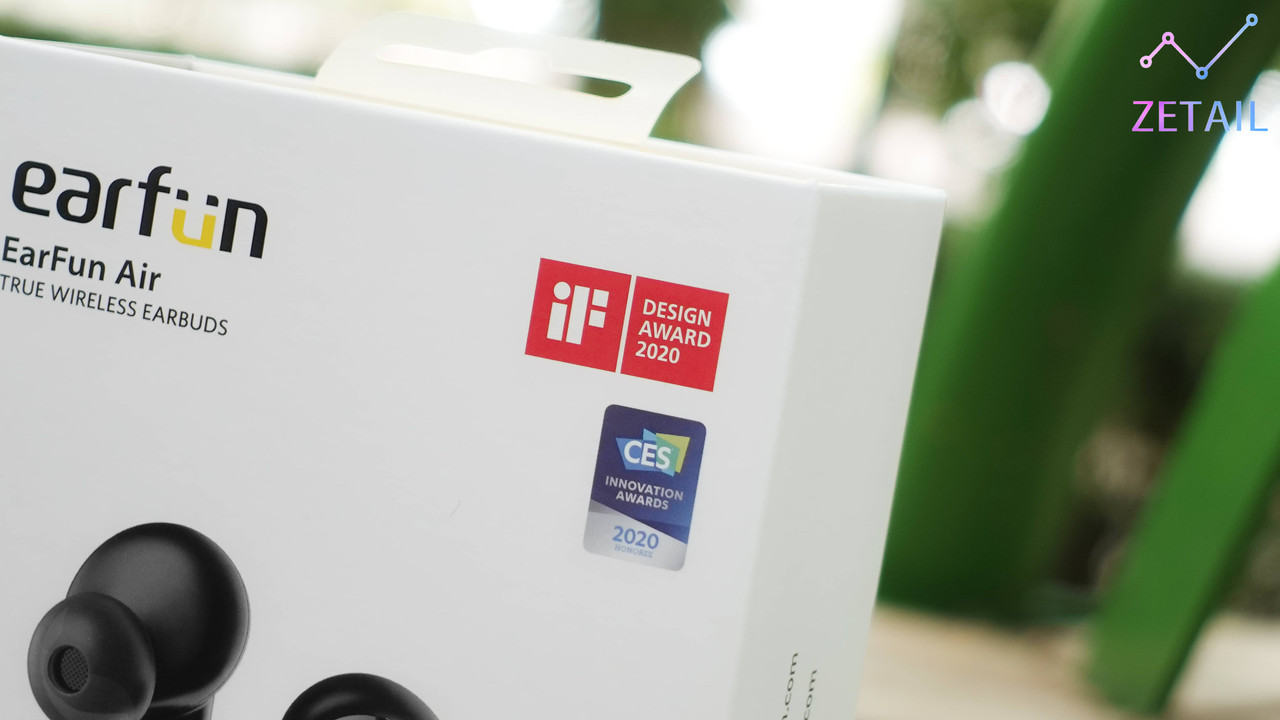 ▲ EarFun Air 的盒裝設計很簡單,正面就是一些它獲得的獎項、產品圖片、特色功能。
