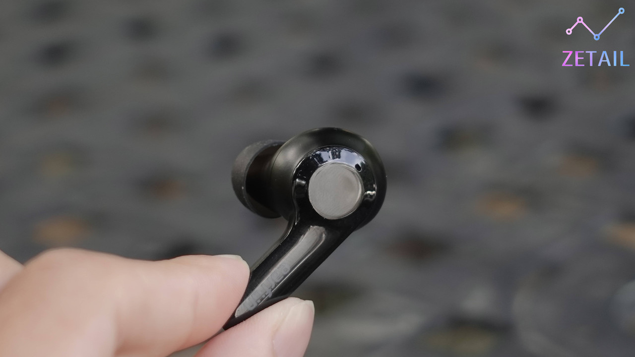 ▲ 耳機本身為入耳式形式,有著「長柄」的造型。非全平面的外側面板在光線下營造出不錯的質感。