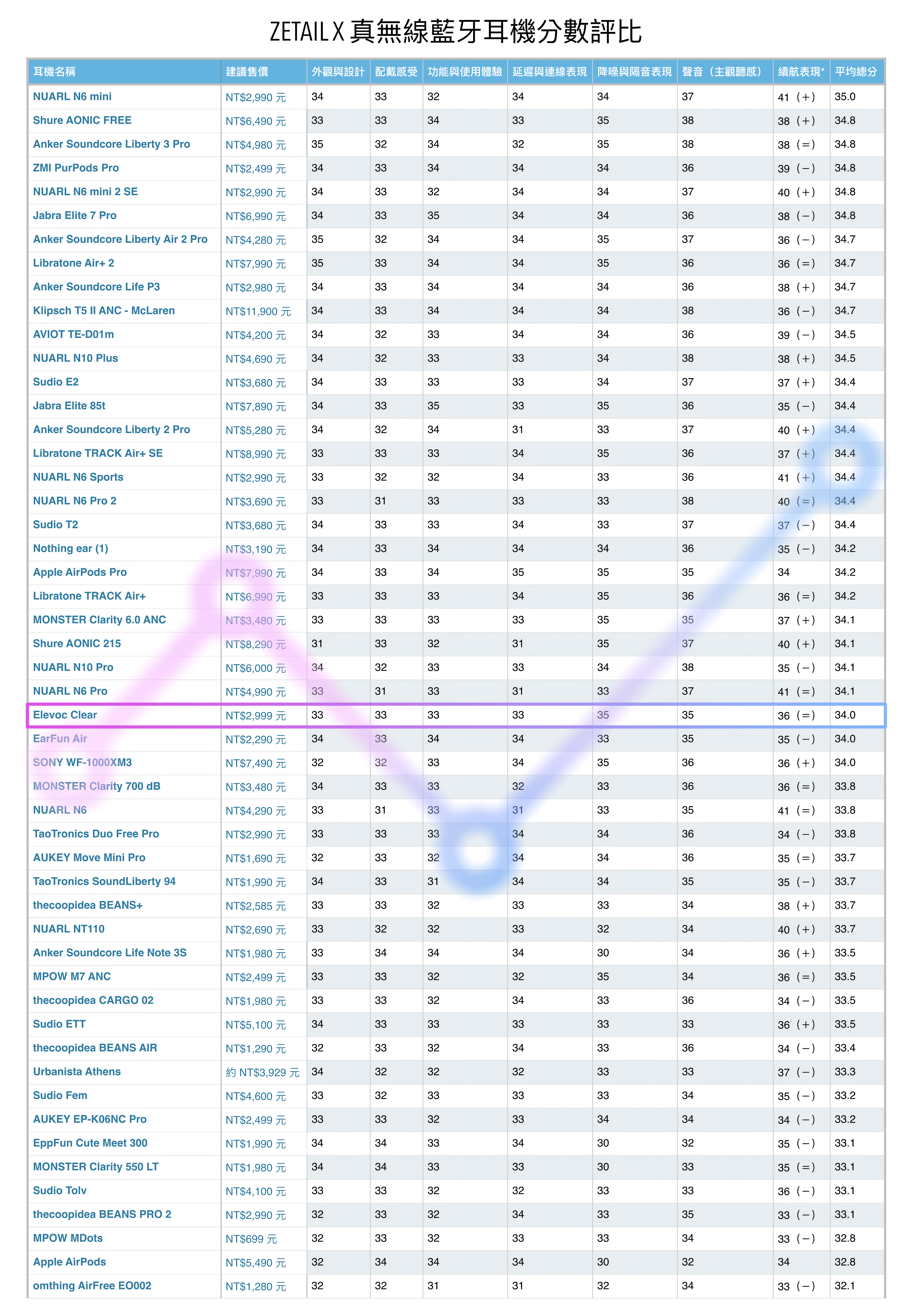 Elevoc Clear 的主要賣點都圍繞在「功能」層面,包括「Elevoc Vocplus™ 第三代骨傳導通話降噪技術」、「混合式主動降噪」、「入、離耳偵測」等,從跟競品的實測對比可以聽出,Clear 的通話錄音品質真的頗具水準,特別是在吵雜情境下。至於其它方面的表現,Clear 也都至少有及格以上,沒有太大的缺點或瑕疵可以挑,因此,如果你把通話或錄音的需求看得很重,想找一款適合的真無線藍牙耳機,Elevoc Clear 幾乎就是你的絕佳選擇。