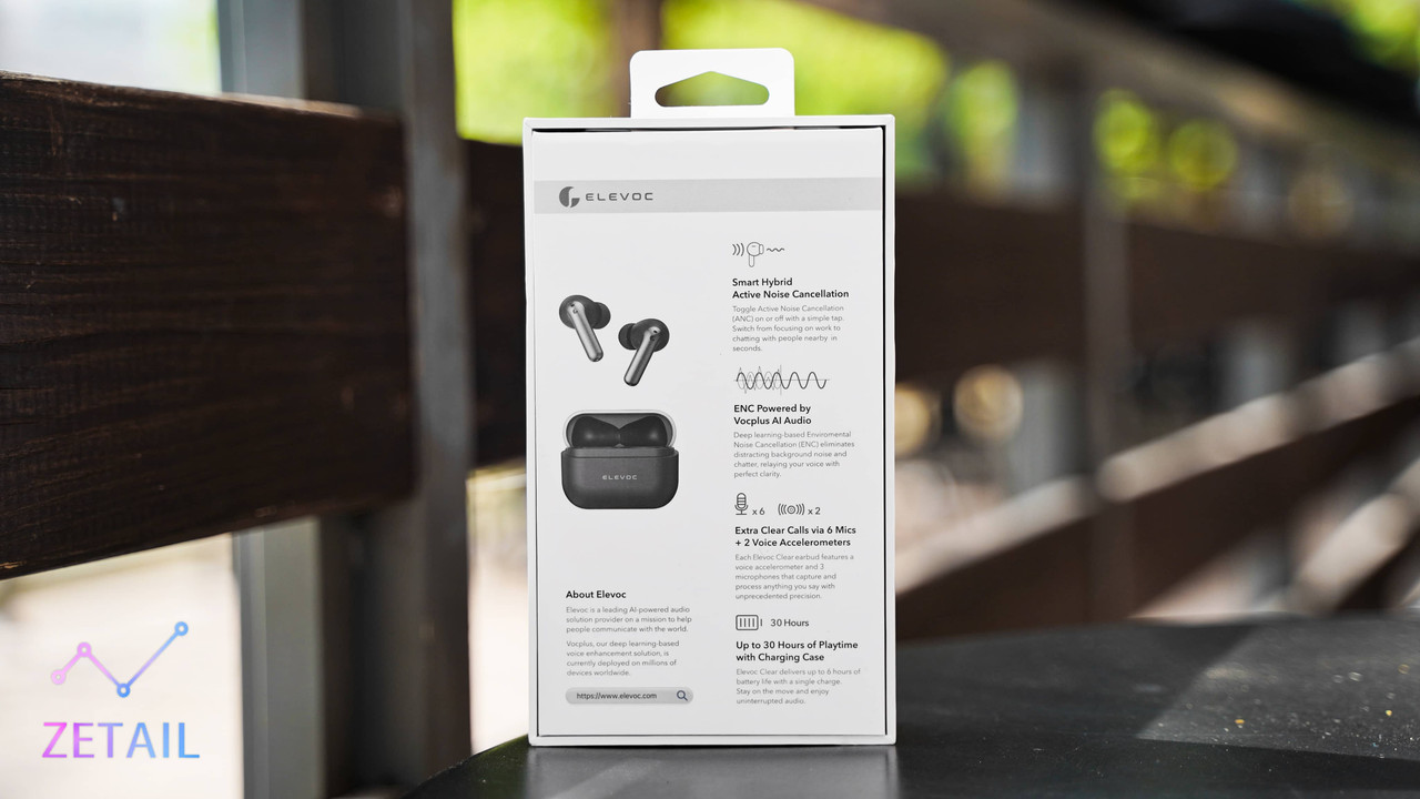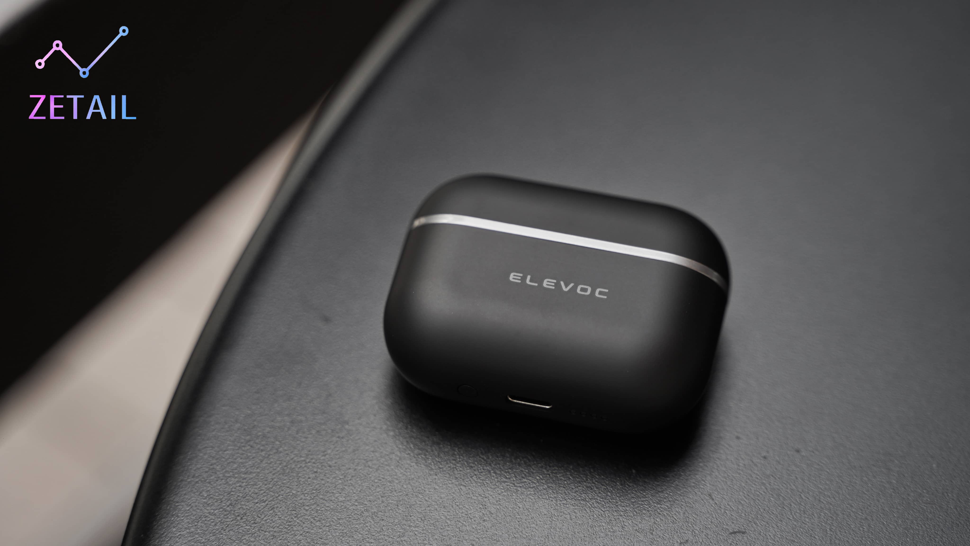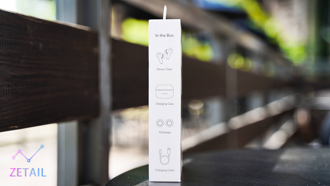 ▲ Clear 的充電盒是圓角方形的造型,正面有 Elevoc 的 Logo。