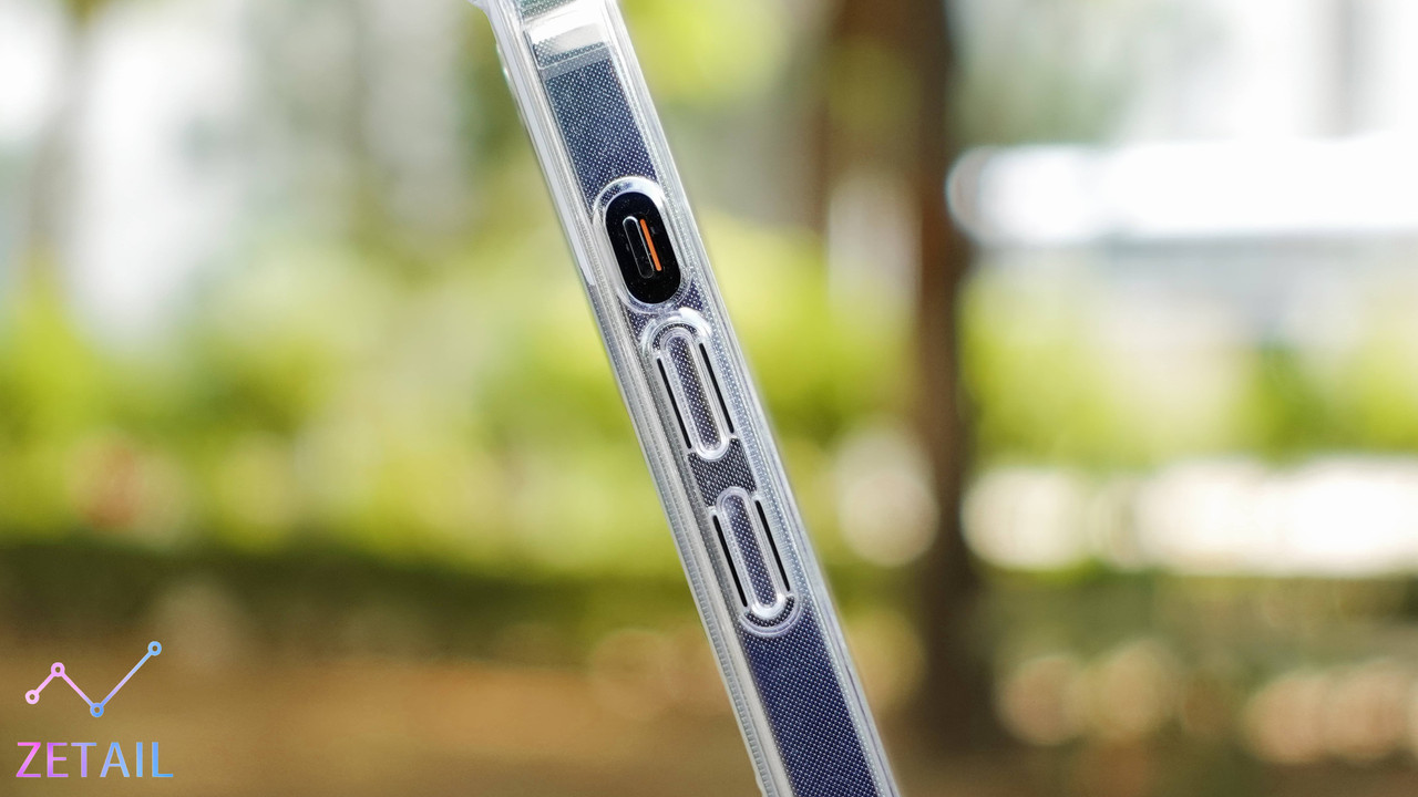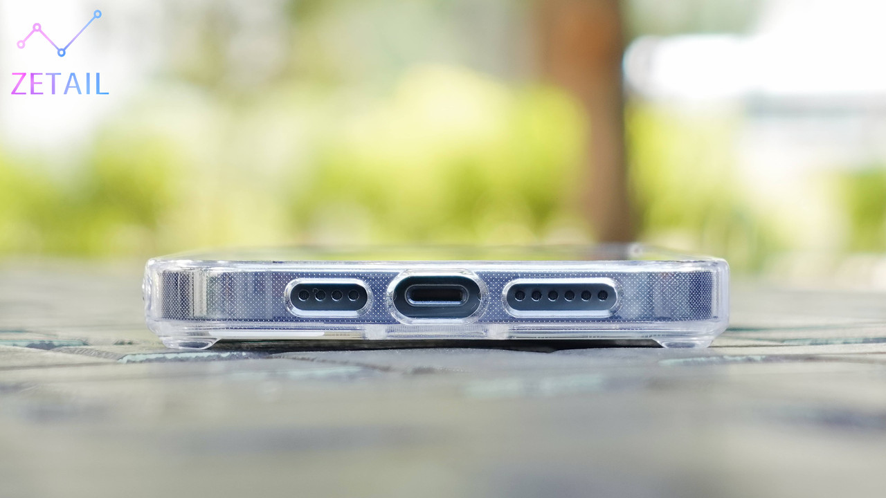 「晶石保護殼」的使用體驗很讓人滿意,電源鍵、音量鍵都非常好按,回饋恰到好處;靜音撥鍵很方便操作,不太會被保護殼卡到;底部的氣壓計、Lightning 插槽、喇叭開孔十分精準,可以相容於大多數第三方 MFi 充電傳輸線;qi 無線充電、Apple Pay 都能正常使用,而 MagSafe 磁吸功能根據 hoda 的實測也是可以使用的。