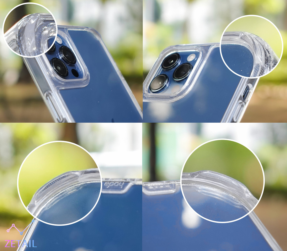 ▲ 除了晶石保護殼本身軍規等級的防護能力,它的邊框也高於貼上玻璃保護貼的 iPhone 12 Pro Max。