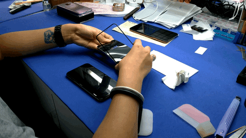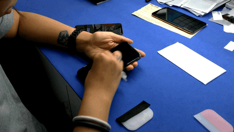 ▲ 接著就開始來貼膜啦!首先貼的是背貼,師傅會先將手機背面的玻璃擦拭乾淨。