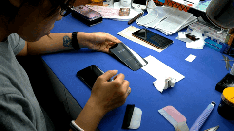 ▲ 如果都沒有問題的話,其實到第四步就完成了,但如果師傅發現保護貼下方還有灰塵,就會將保護貼掀起來再把灰塵黏走,確認過後就完成啦!