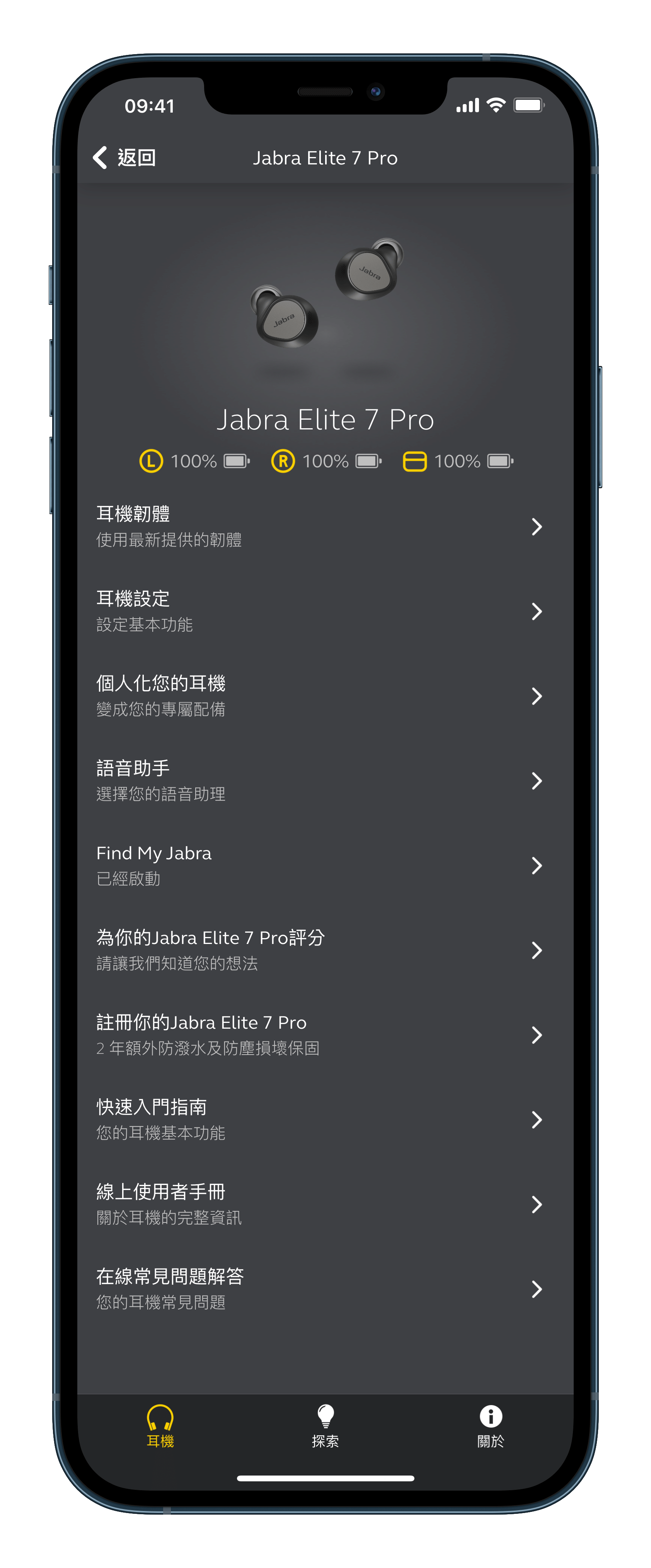 ▲ 成功把 Elite 7 Pro 跟「Jabra Sound+」連線之後的主畫面,常用的功能都在這邊了。