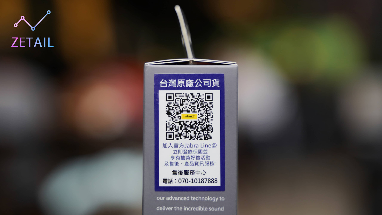 ▲ 側面貼有「台灣原廠公司貨」的貼紙,表示這是 Jabra 臺灣總代理「先聲數位」的公司貨,售後服務會更有保障。