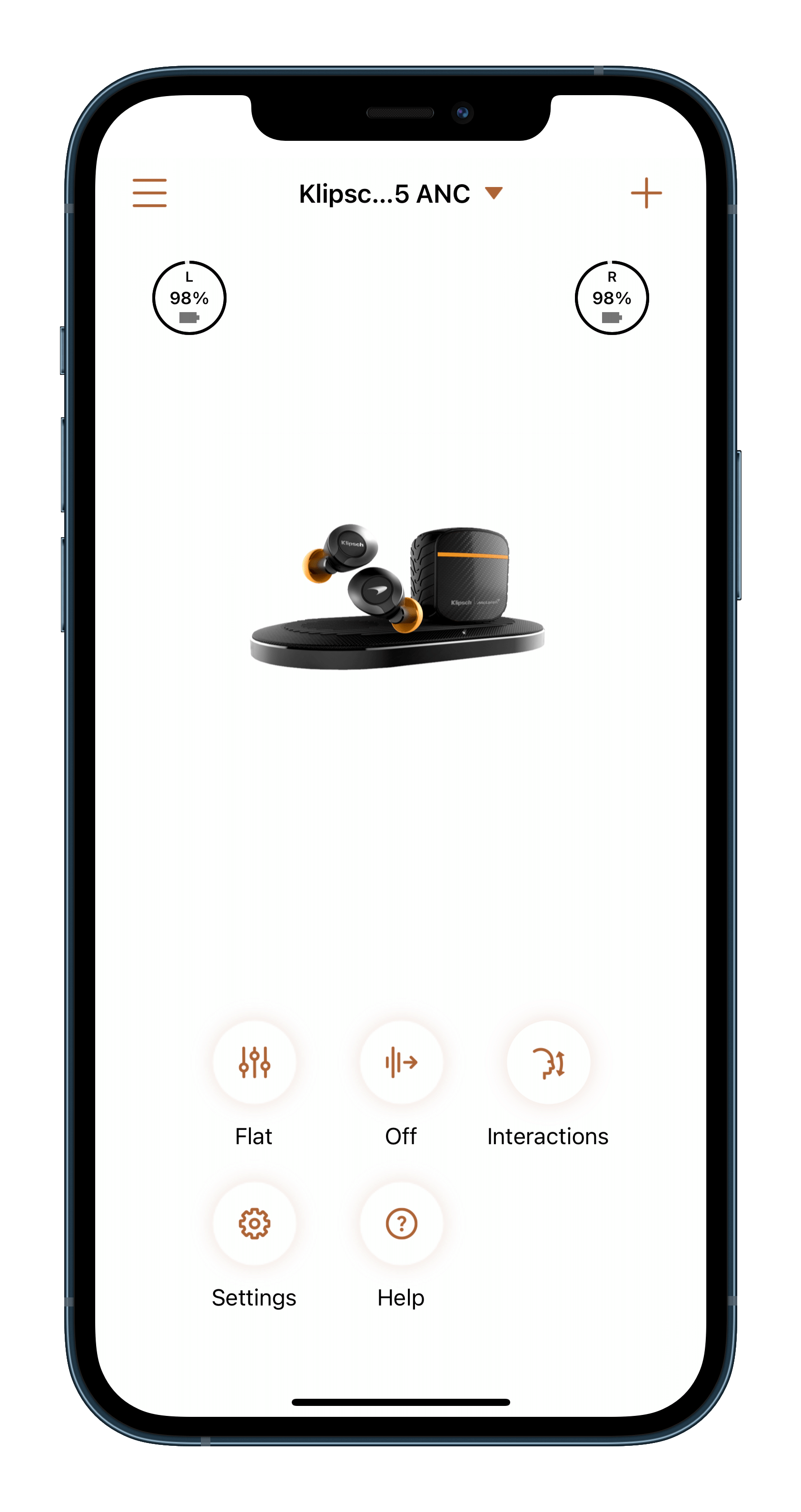 ▲ Klipsch Connect 的主畫面,介面設計真的比較單調,上方可以看到兩邊耳機的電量,下方則是功能區。