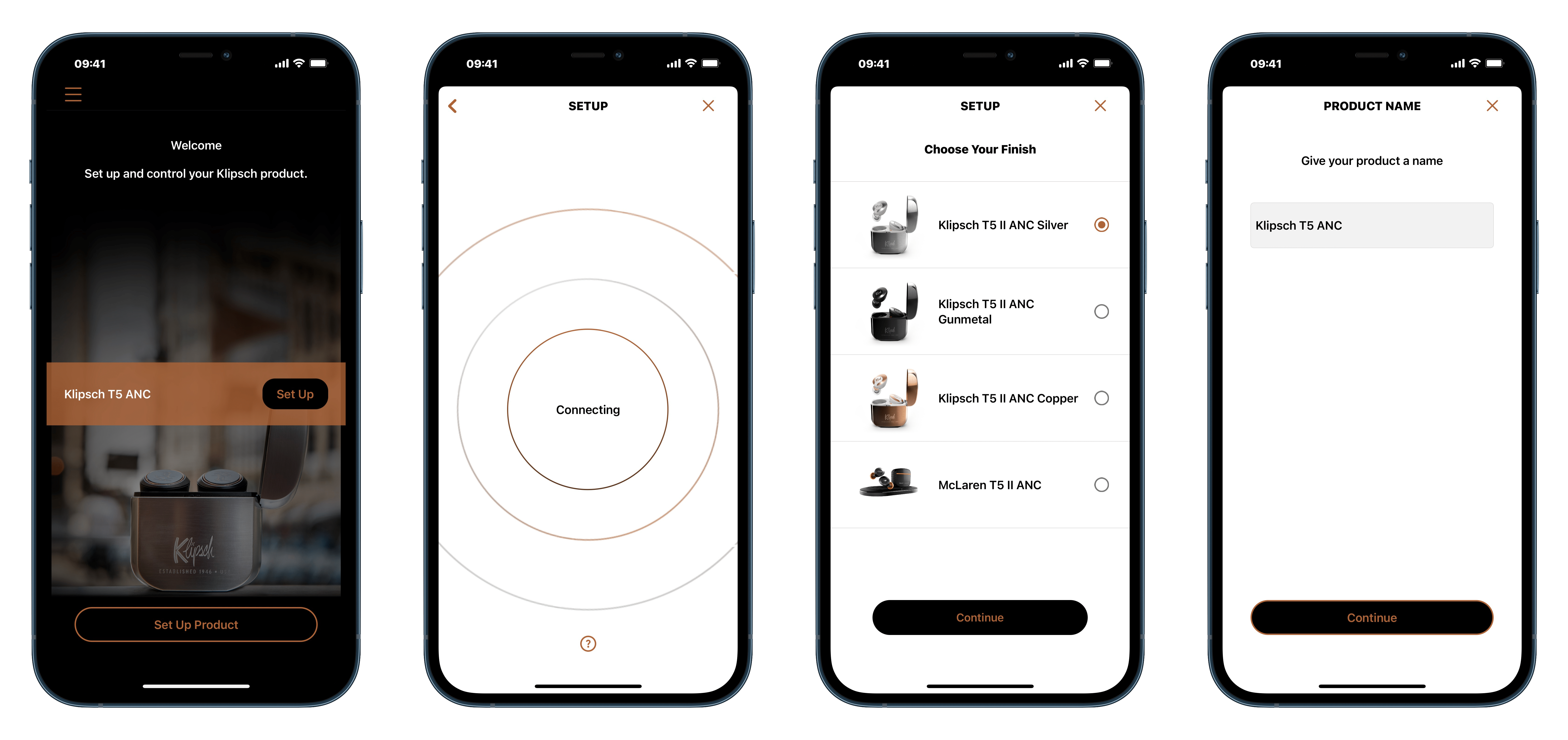 ▲ 進入 App 之後,它會自動尋找是否有 Klipsch 耳機已經完成藍牙連線,點擊「Set Up」即可開始設定流程,接著要選擇自己的 T5 II ANC 是一般版還是聯名款,並為它命名。