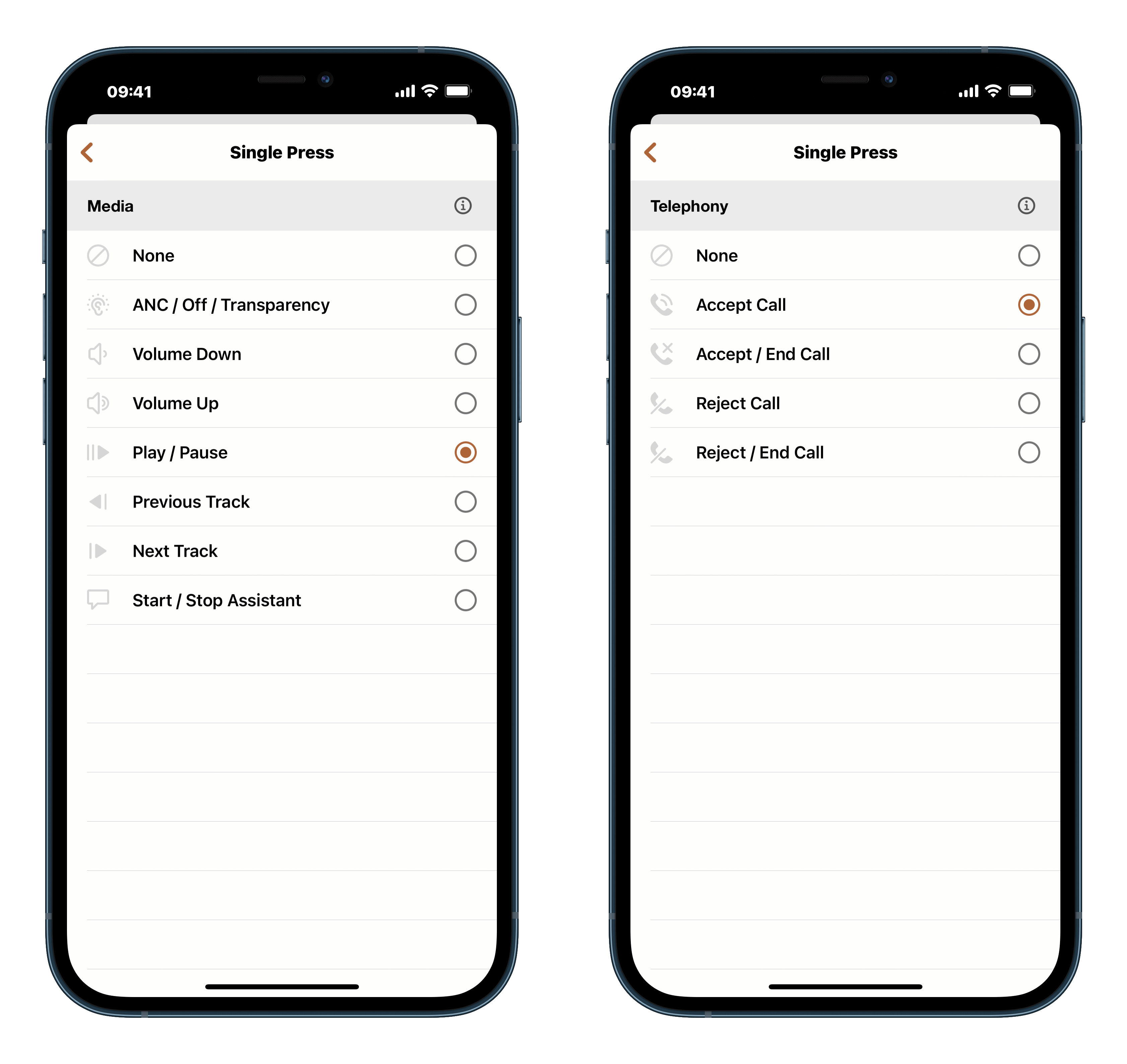 ▲ 透過 Klipsch Connect 應用程式也可以設定在音樂播放時、通話時的按鍵功能。