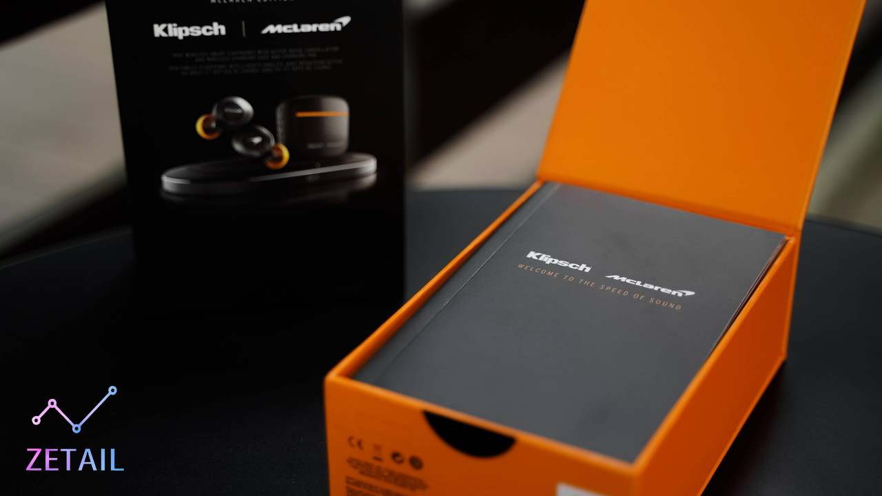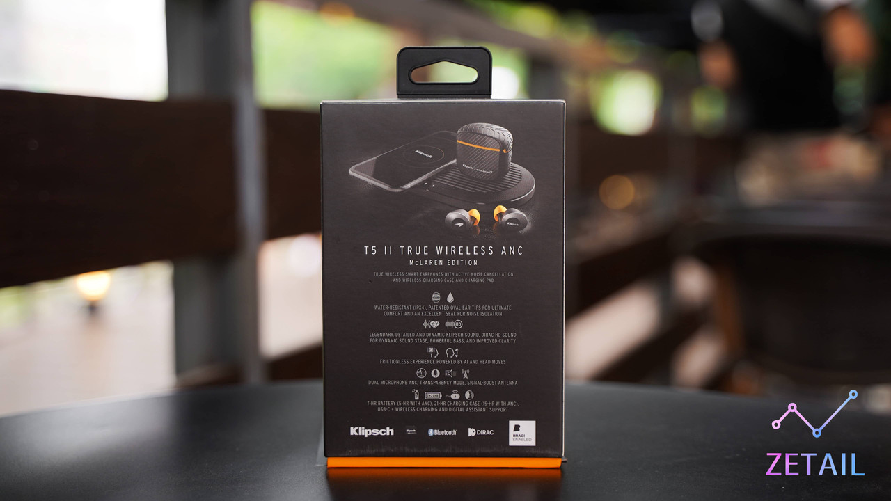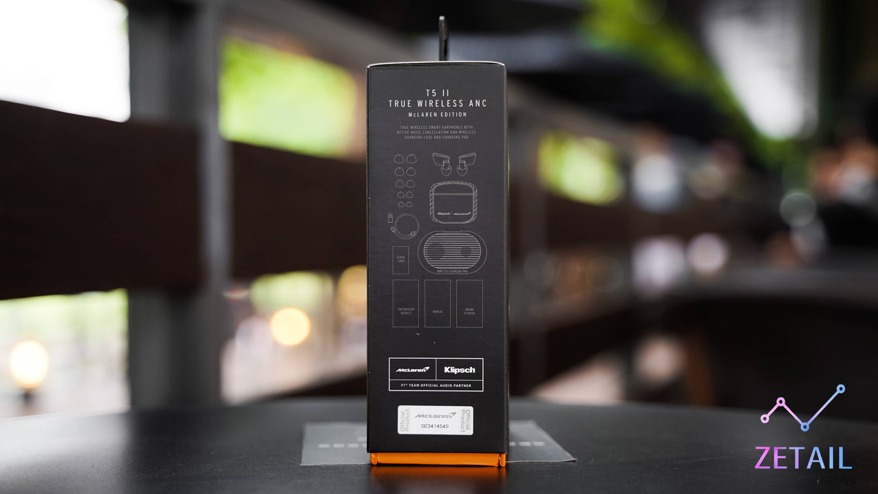 ▲ 今天我開箱的是 McLaren 麥拉倫聯名款的 T5 II ANC,因此正面同時放上了 Klipsch 和 McLaren 的 Logo。