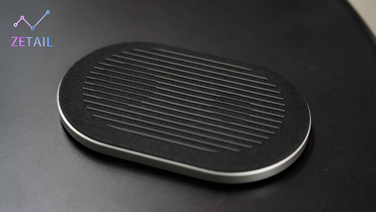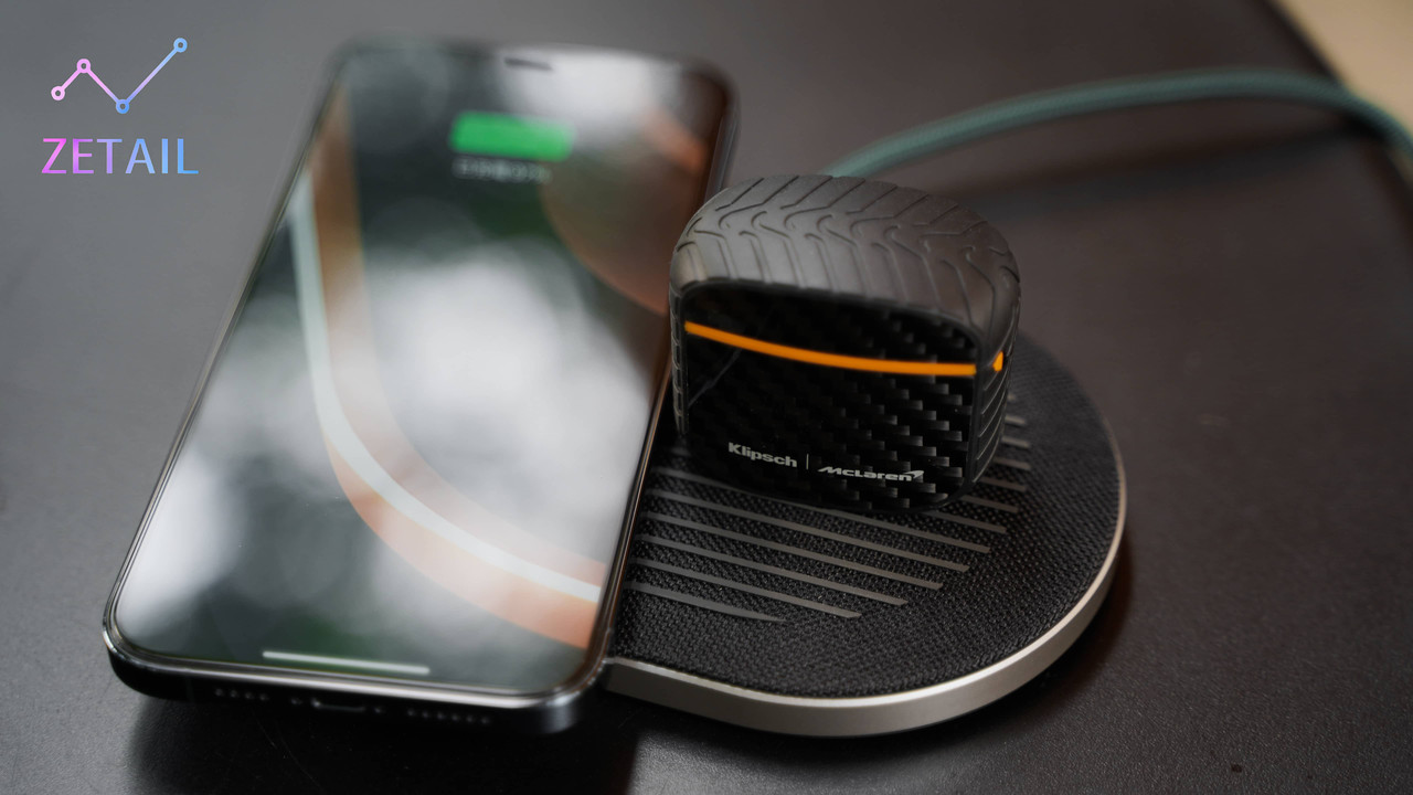 ▲ 麥拉倫聯名款盒裝內還會多附上一個質感不錯的 Qi 無線充電器,它可以一次幫兩款裝置充電,表面能隱約看到有一大一小的圓形,那就是充電的位置。