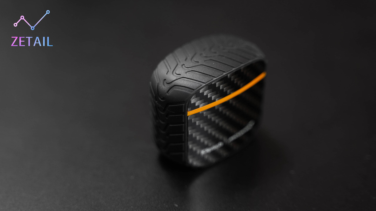 外觀是 Klipsch T5 II ANC – McLaren 的一大特點,畢竟這是除了配件以外,聯名款跟一般版唯一的不同。為了充分展現超跑氣質,聯名款 T5 II ANC 的充電盒正面、背面都用上「碳纖維材質」,並包覆了一圈帶有立體輪胎紋路的橡膠材質,因此 T5 II ANC – McLaren 的充電盒重量非常輕,也難怪有些使用者會覺得全金屬材質的一般版更有質感,這方面就見仁見智了。