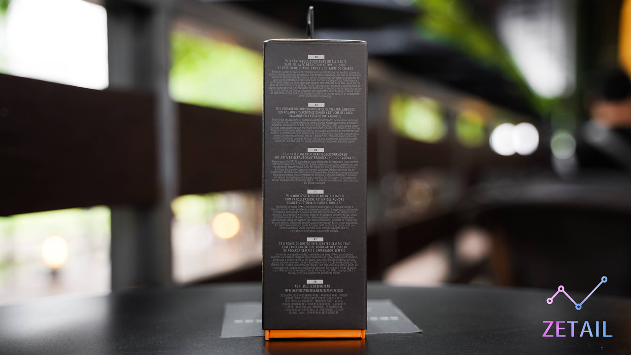 ▲ 還是看回到耳機本身,T5 II ANC 的盒裝設計比較簡單,正面可以看到產品圖片以及一些介紹字樣。