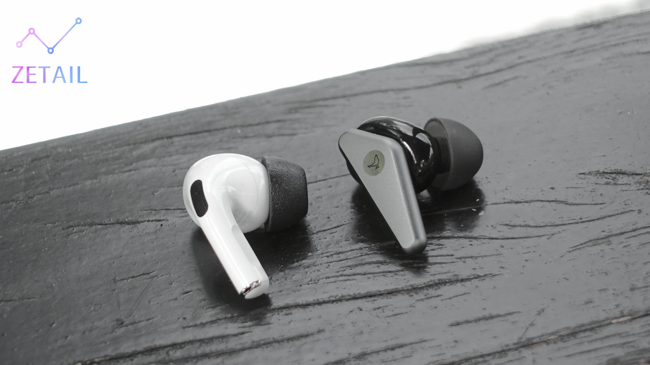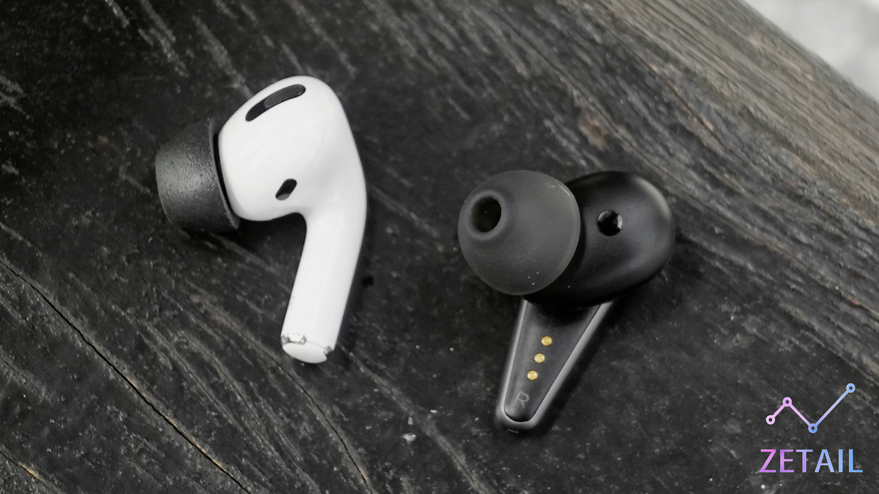 ▲ TRACK Air+ (右) 和 AirPods Pro (左) 的腔體造型有「異曲同工之妙」,都是「橢圓形」的設計。同時你還可以發現 TRACK Air+ 的「耳塞」是從「腔體」延伸出來,這使得它避開了傳統入耳式耳機的通病。