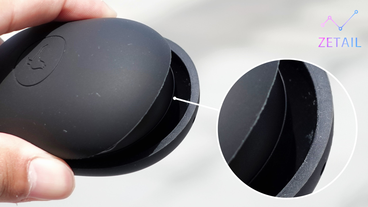 雖然 TRACK Air+ 圓潤的充電盒看起來就像是顆「鵝卵石」,非常小巧可愛,觸感也很滑順舒適,不過轉軸結構是塑膠材質,也沒有內置彈簧,因此推開蓋子時,沒辦法做到像 AirPods Pro 那樣,打開到一定角度就「自動彈開」,穩定性、使用體驗都略遜一籌,我認為這是 TRACK Air+ 充電盒的質感難以更上一層樓最大的障礙。