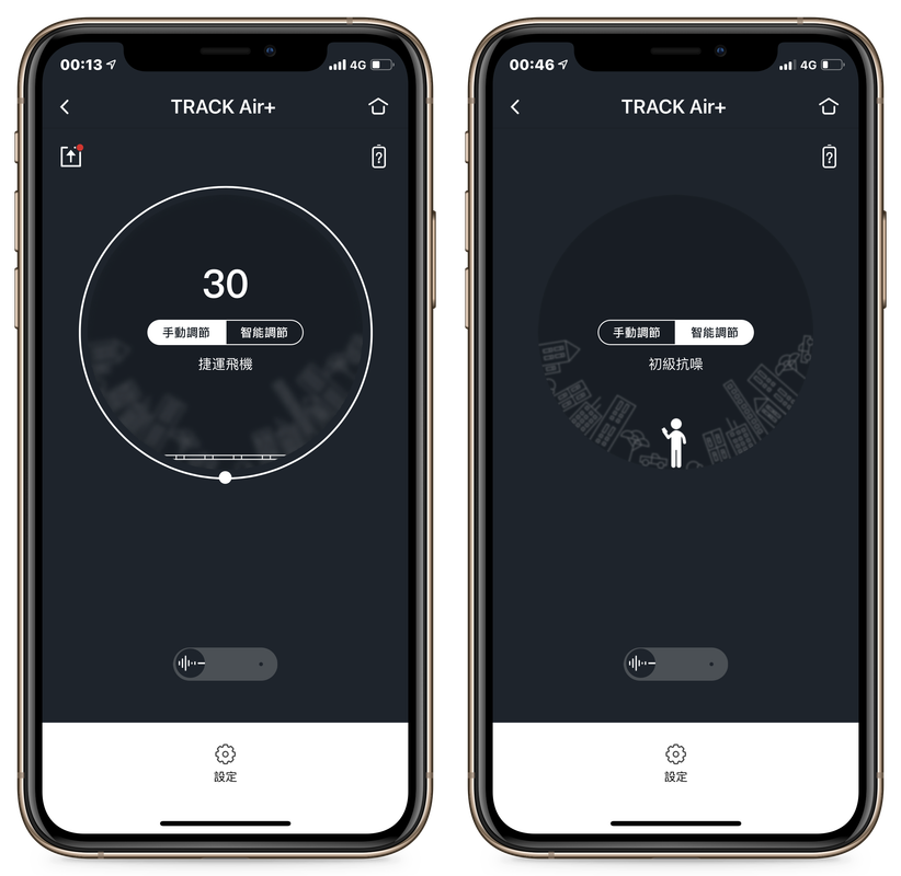 ▲ TRACK Air+ 的降噪模式分為「手動調節」跟「智能調節」,切換至後者時,耳機會去感知使用者當下的動作、情境,自動調整降噪的強度與模式。