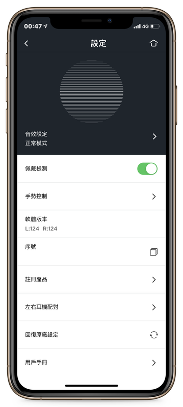 ▲ 在針對 TRACK Air+ 本身的設定頁面中,提供了包括「音效設定」、「配戴檢測」、「手勢控制」…等功能的設定。