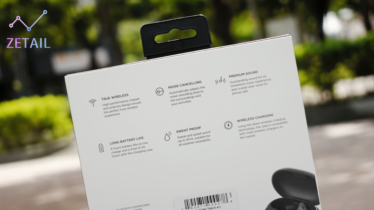 ▲ Libratone 在盒裝背面整理了 TRACK Air+ 的 6 大特色功能,包括「真無線設計」、「主動降噪」、「頂級音效」、「長時間續航」、「防汗防潑水」、「無線充電」,接下來的文章中都會提到。