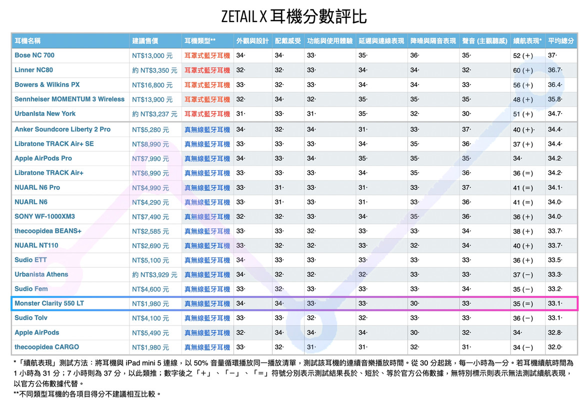 Monster Clarity 550 LT 作為我評測過最便宜的真無線藍牙耳機之一,它有著超乎期待的綜合表現,特別是功能的豐富性,許多要價三、四千元的耳機都沒有的「入、離耳偵測」功能、「充電盒 qi 無線充電」、「觸控手勢操作」,一款售價不到兩千元的 Clarity 550 LT 不只通通都有,而且使用體驗也都很不錯。如果你不在意降噪,只是想找個便宜又好用的真無線藍牙耳機,Clarity 550 LT 會是很棒的選擇。