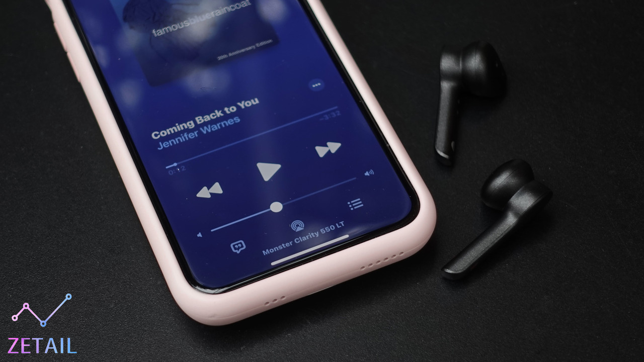 Monster 宣稱 Clarity 550 LT 的連續音樂播放時間為 5 小時;我使用「ZETAIL X 標準耳機續航測試 [與蘋果 iPad mini 5 (AAC) 連線,以 50% 音量連續播放相同音樂]」來測試 Clarity 550 LT 的續航能力,它總共連續播放了 5 小時 12 分鐘的音樂,略長於官方的時間,考量到採用的是「半入耳式」設計,這樣的成績已經很不錯。最後,Clarity 550 LT 的充電盒還支援 qi 無線充電,只要把它放在 qi 無線充電器上就可以直接充電,相當方便。