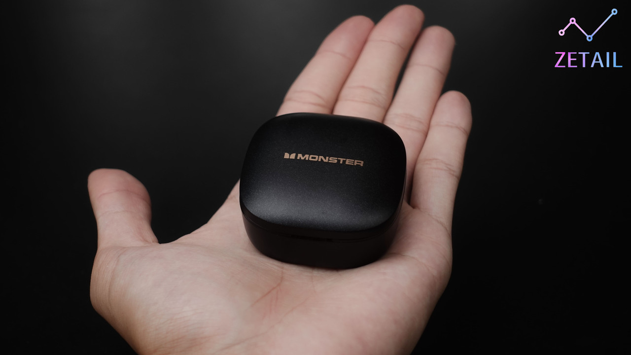 Monster Clarity 550 LT 的充電盒體積非常小巧、可愛,比第一、二代 AirPods 的充電盒更小,攜帶起來很方便。黑色充電盒的外殼是霧面磨砂觸感,加上 Monster 的獨特工藝,讓它看起來亮亮的,散發著類似「花崗岩」的珠光質感,整體無論是觀感、觸感、質感、組裝品質都相當優異,甚至比一些我開箱過的四千多元的真無線藍牙耳機還好 (就不說是誰了),多年累積的耳機生產、製造經驗果然不是蓋的。