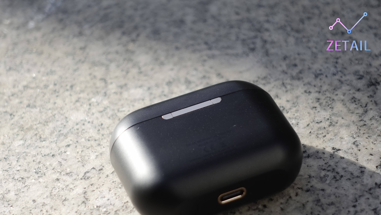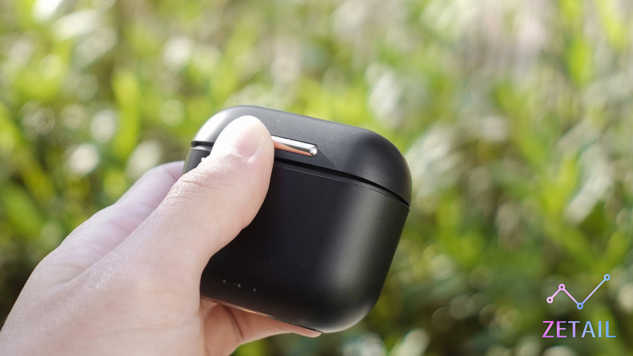 ▲ 充電盒採用類似 AirPods 系列的設計,凸出的「橫槓」在上面顯得格外顯眼。