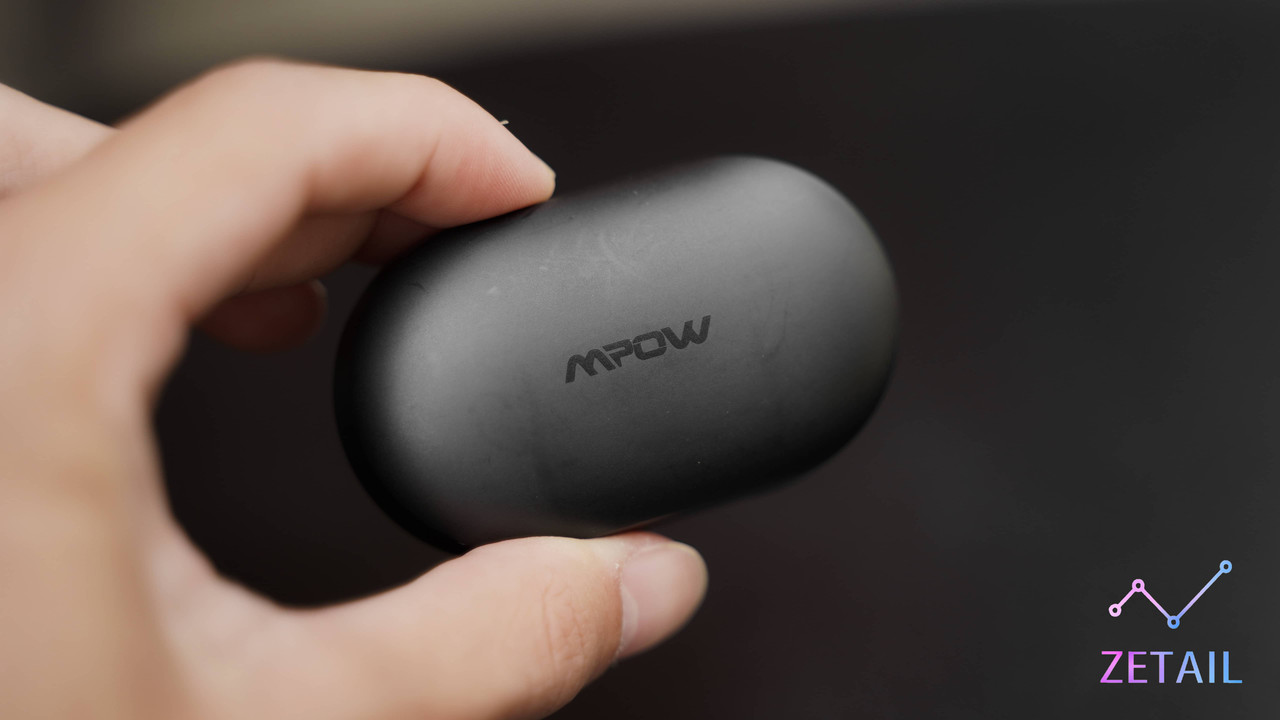 MPOW MDots 在外觀上並沒有什麼太特出之處,充電盒採用橢圓形的艙體設計,頂部有 MPOW 的 Logo,除此之外就沒有什麼特殊的字樣或是點綴了。外殼是磨砂質感,但並不算很細膩,塑膠感蠻重的,也不太耐刮,好處則是不管沾上指紋或灰塵都能很輕易擦去。