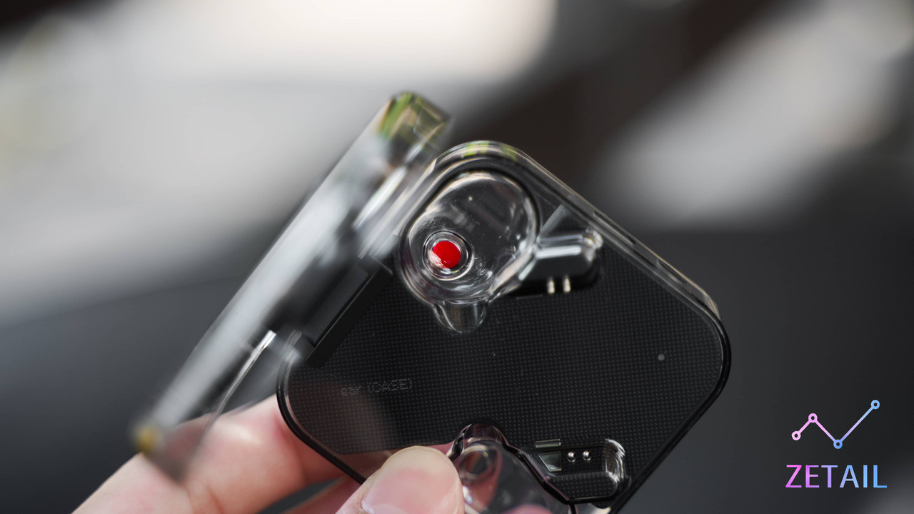 ▲ 透過耳機的透明外殼可以看到內部的「NOTHING ear (1)」的字樣,很細節的設計。