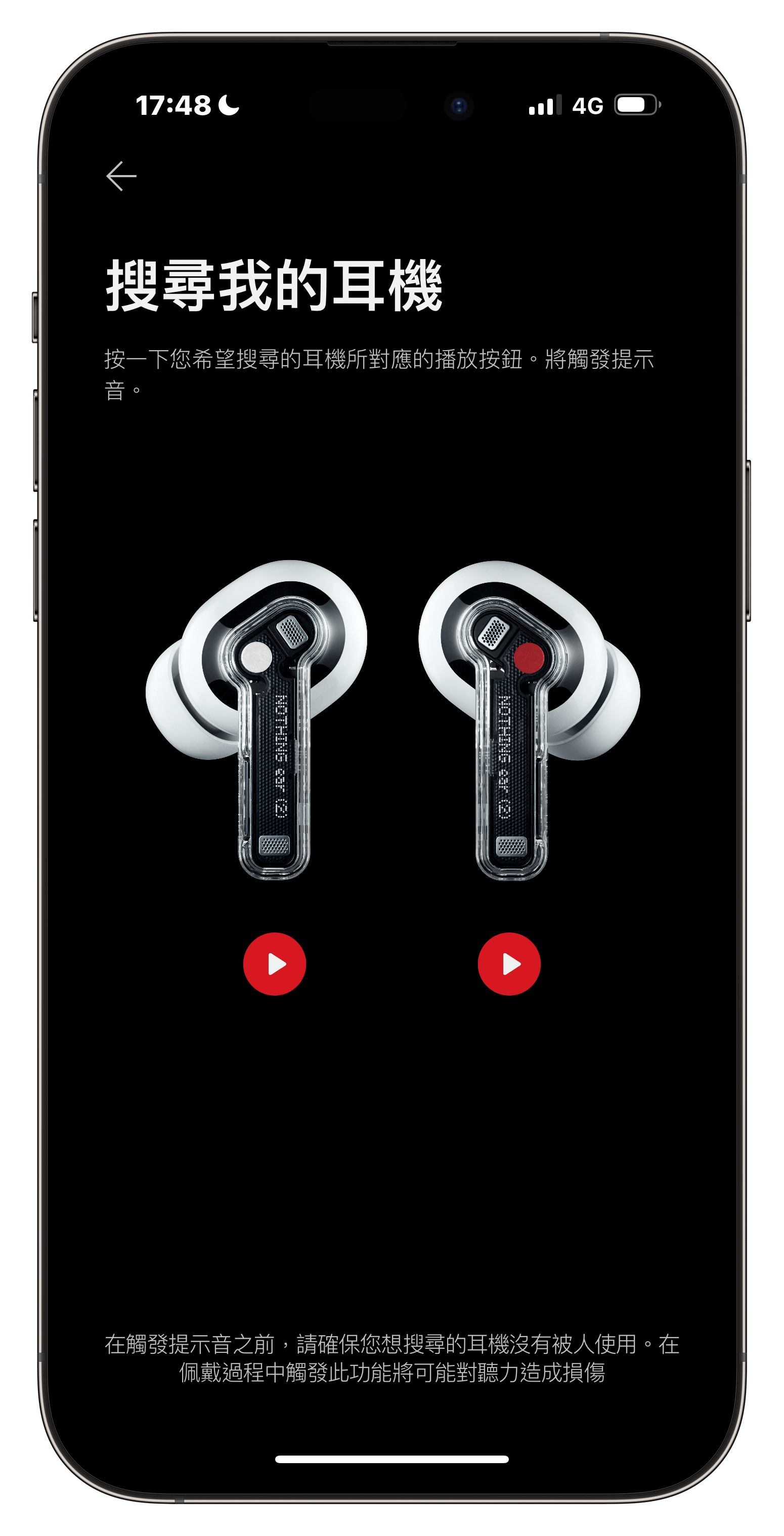 ▲ App 內有提供「搜尋我的耳機」功能,如果你突然找不到耳機,可以透過這個功能,讓耳機播放提示音,讓你能更快找到它。這個功能適合用在小範圍空間內。