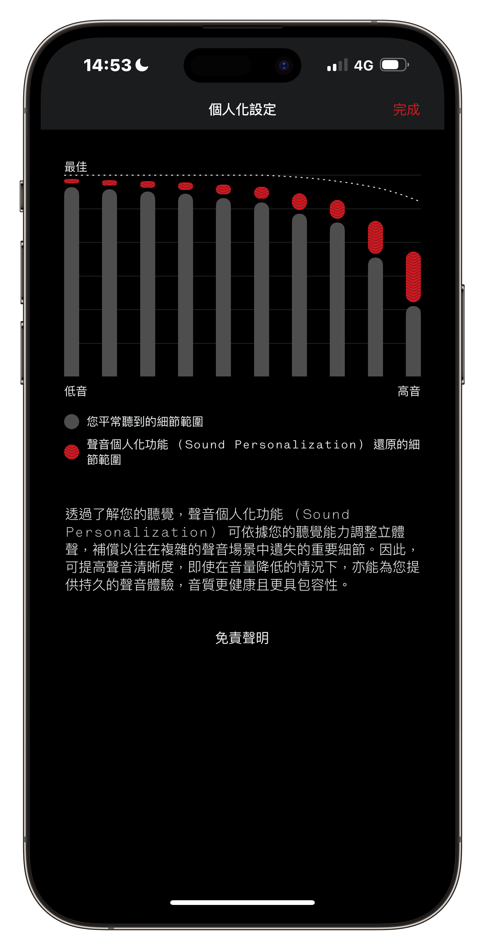 ▲ 完成測試後,會顯示你的聽力,以及「聲音個人化」所增強的部分。