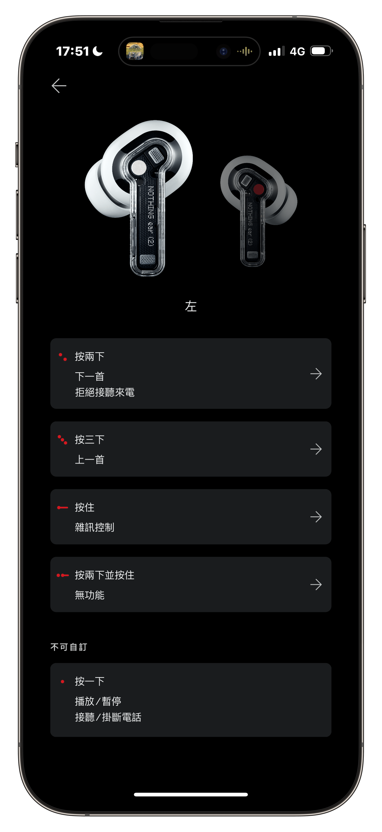 ▲ 你可以在「Nothing X」App 內變更按壓控制要觸發的功能。