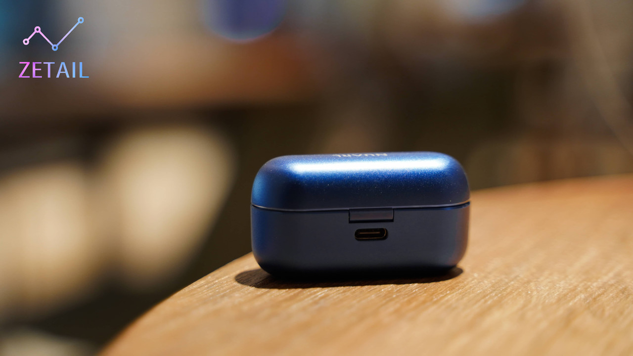 ▲ 充電盒的轉軸是塑膠材質;背面有 USB-C 充電插槽。