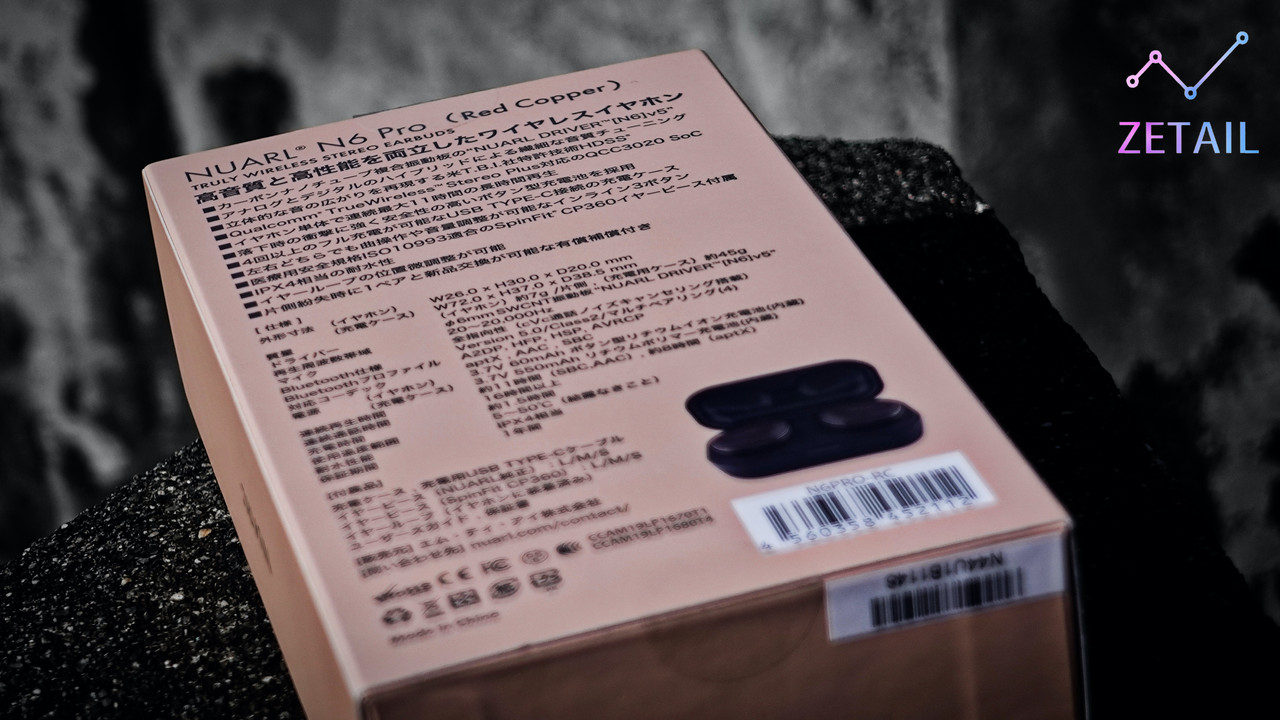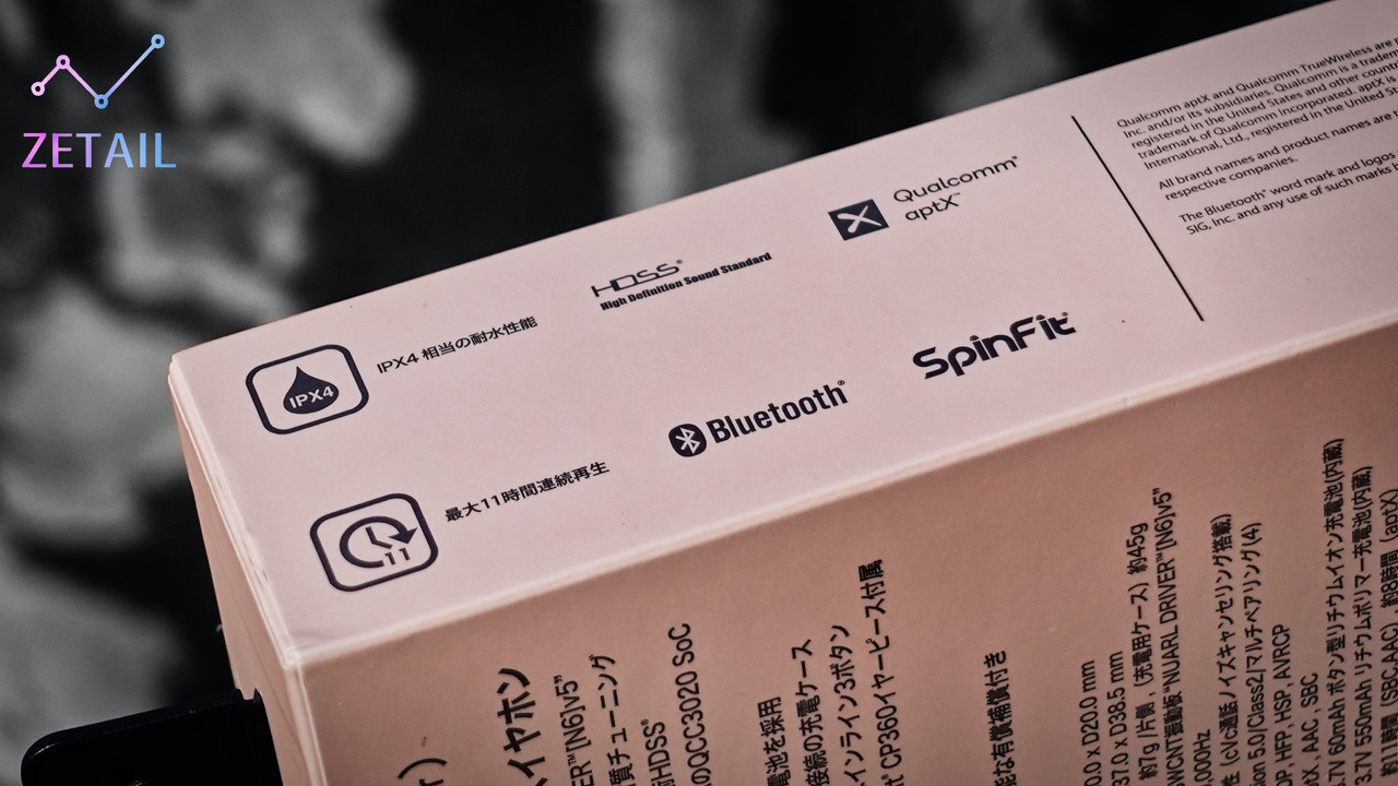 ▲ 盒裝側面標示著 N6 Pro 的六大特色,包括支援 Qualcomm 的 aptX 音訊編碼、內附 SpinFit 矽膠耳塞、搭載 HDSS 技術…等等。