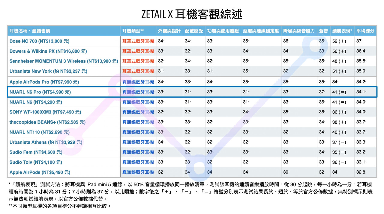 ▲ 在 ZETAIL X 標準耳機續航測試下,N6 Pro 的續航表現達到 11 小時 17 分鐘,十分驚人。(圖片來源 / 翻攝自 NUARL 官方網站)