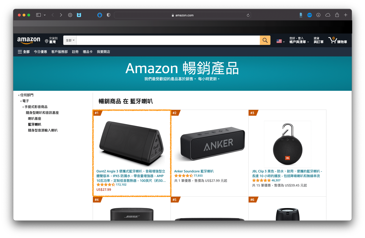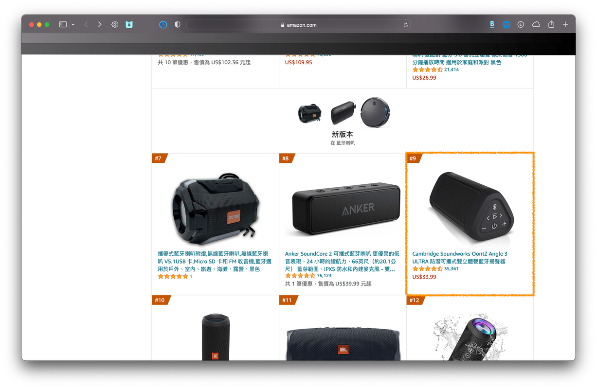 ▲ Angle 3 跟 Angle 3 ULTRA 在我撰稿的時候分別是 Amazon 藍牙喇叭暢銷排行榜的第 1 名、第 9 名。(圖片來源 / 翻攝自 Amazon)