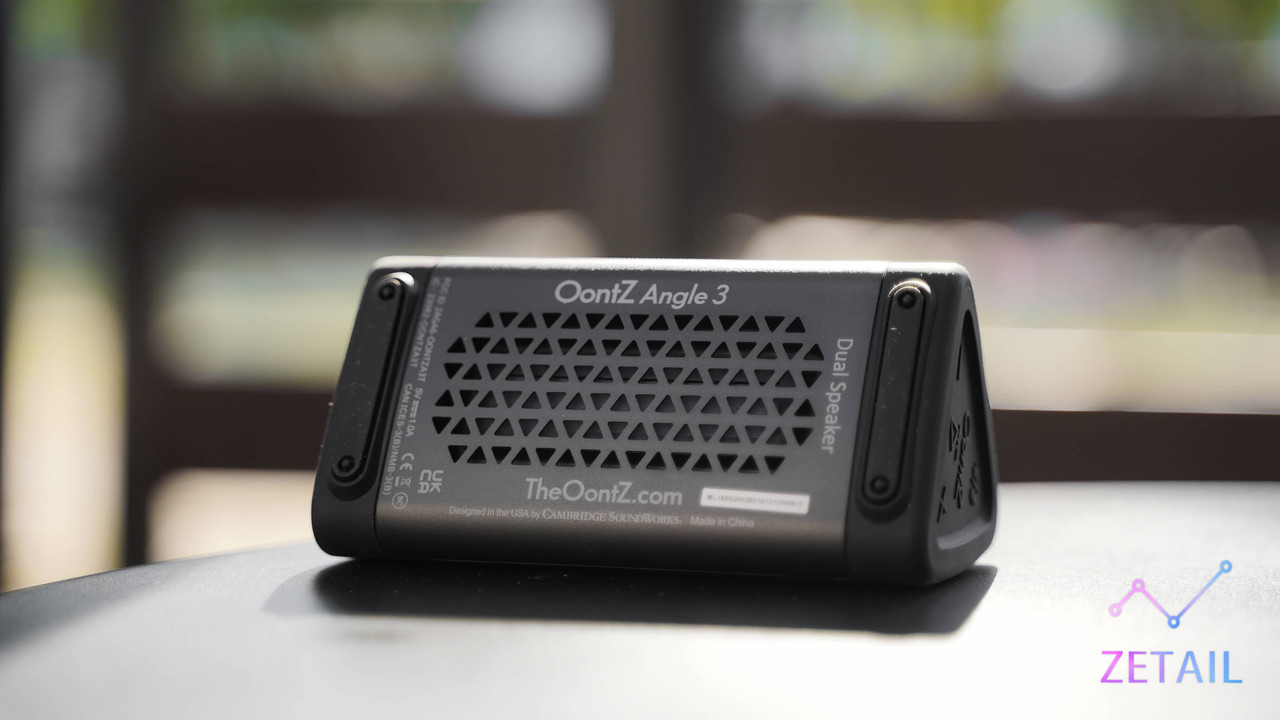 外觀是 OontZ Angle 3 跟 Angle 3 ULTRA 的特色之一,它們都使用「三角柱造型」的設計,跟傳統藍牙喇叭的長方體造型大不相同。OontZ 表示 Angle 3 跟 Angle 3 ULTRA 採用「60 度仰角設計」,如此可以讓聲音得以直接傳遞給使用者(像是放在桌面上的時候),進而提供更佳的聲音表現。
