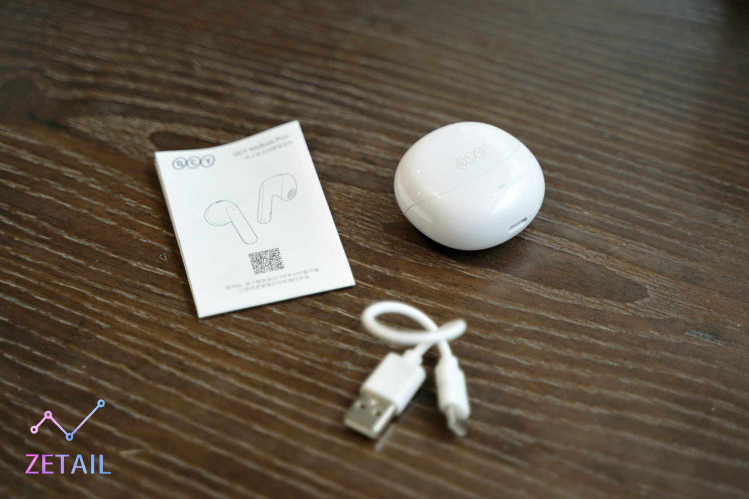 ▲ 盒裝內所有內容物如上圖,就是 AilyBuds Pro+、一條 USB-C 充電線、快速上手指南。