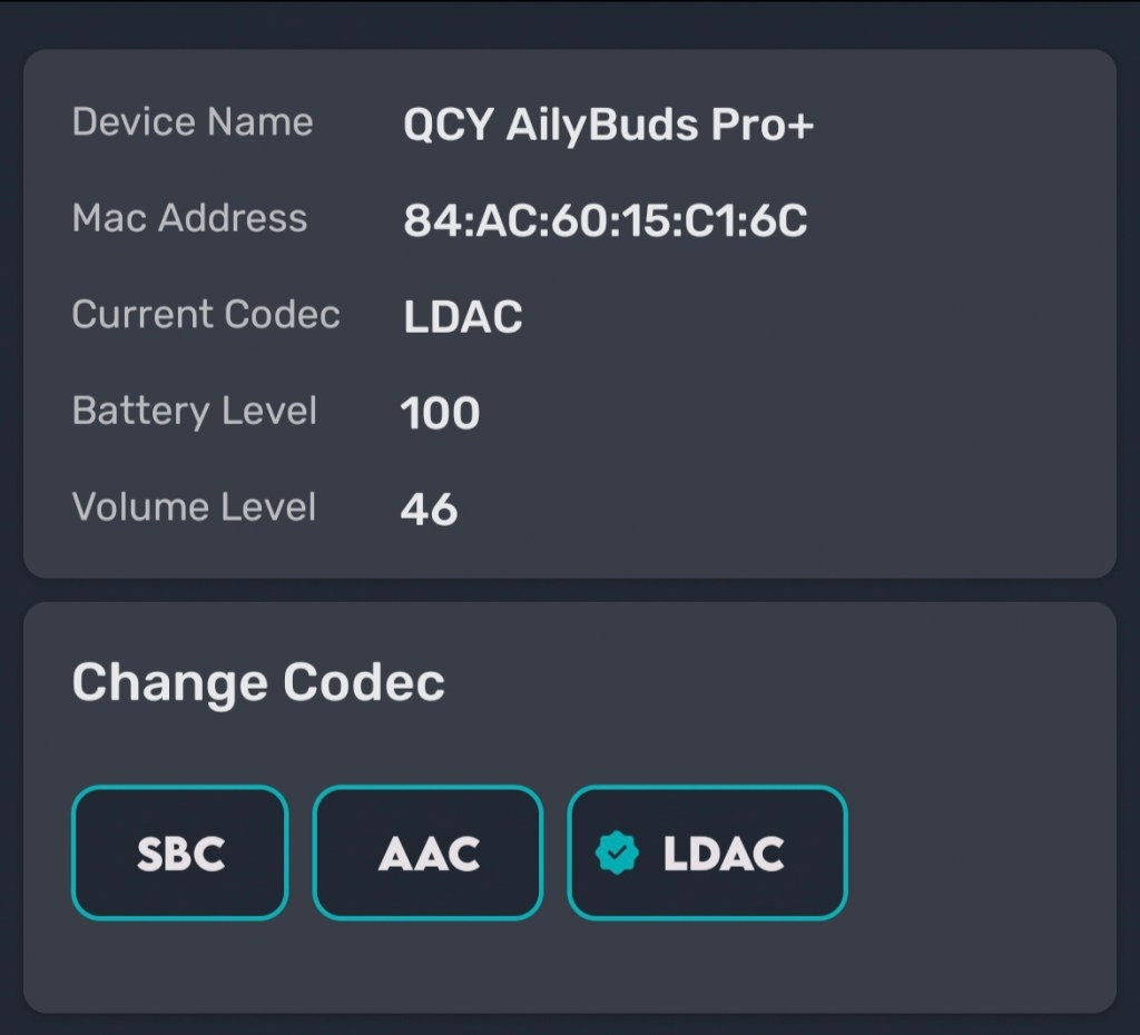 ▲ AilyBuds Pro+ 支援 SBC、AAC、LDAC 三種音頻編碼格式。
