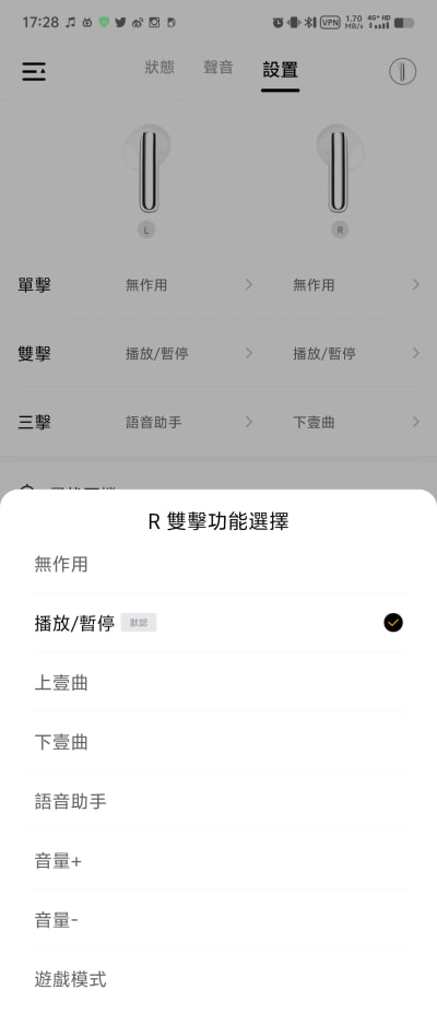 ▲ 以點兩下右邊耳機為例,你可以自由選擇想要觸發什麼功能、操作,使用彈性很大,值得許多品牌好好學學。