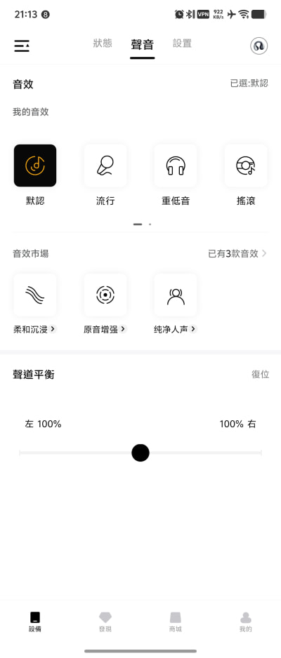 ▲ 耳機連上 App 之後,就會進入主畫面,可以查看兩邊耳機的剩餘電量。