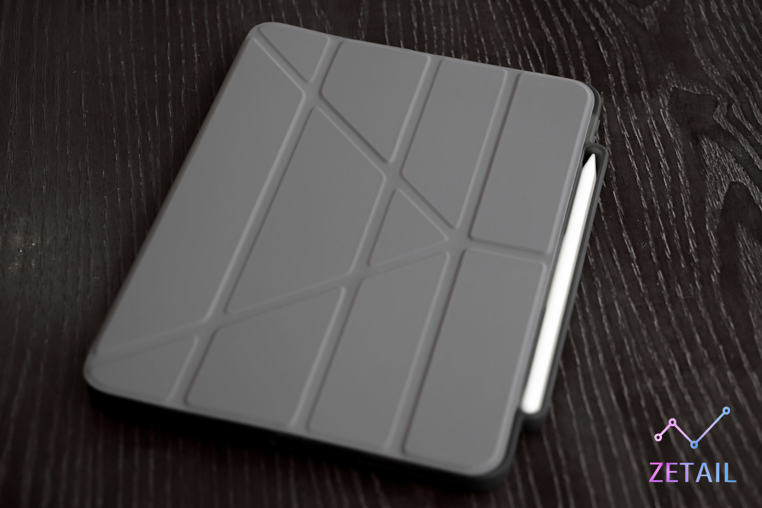 如果你希望保護殼的支架功能提供盡可能多的角度,犀牛盾的 iPad Air 6 保護殼可以說就是為你而生。它總共支援五種支架模式,分別是 20°、45°、50°、55° 的橫立模式,以及比較少見的 45° 直立模式;不同角度的橫立模式適合寫筆記、作圖、追劇等使用情境,直立模式則很適合日常瀏覽、看書、讀譜時使用,如此高的支架使用自由度在大品牌推出的保護殼中比較少見(至少我體驗的其他品牌保護殼都無法如此)。