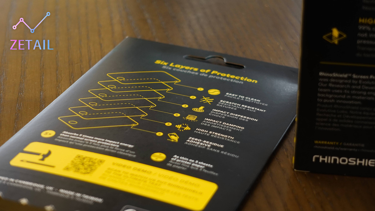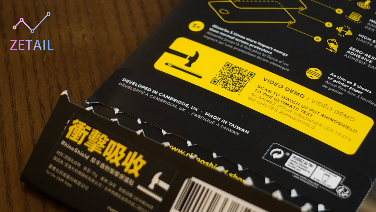 ▲ 兩款保護貼的盒裝都採用犀牛盾招牌的「黑 + 黃」配色,辨識度非常高。