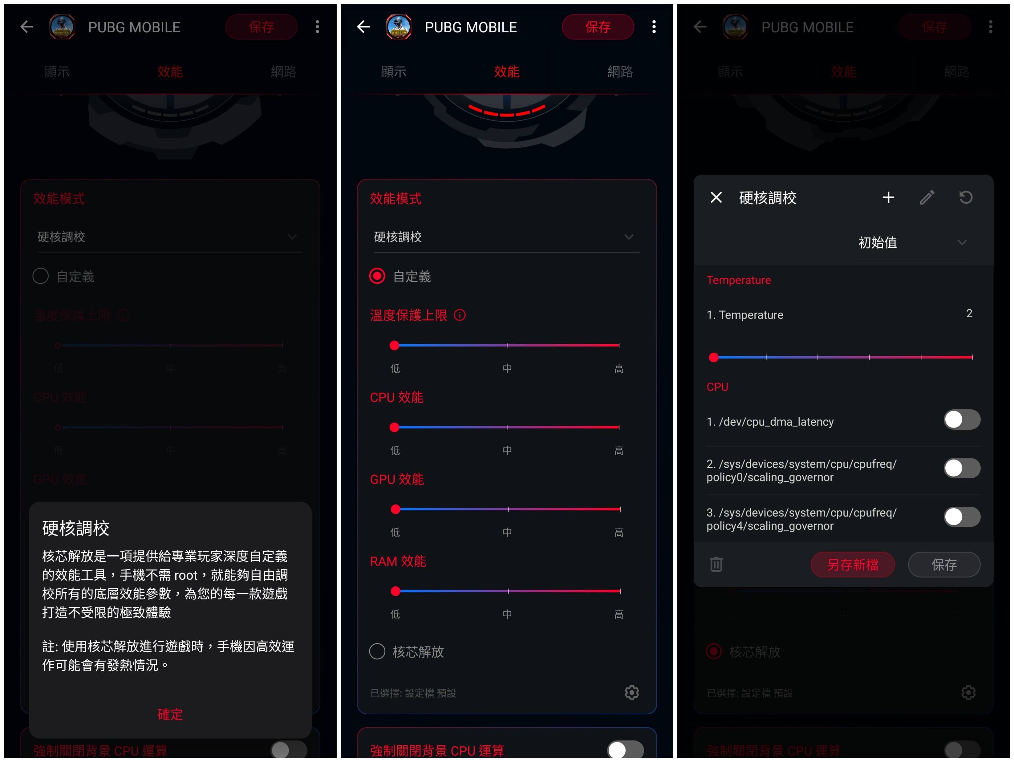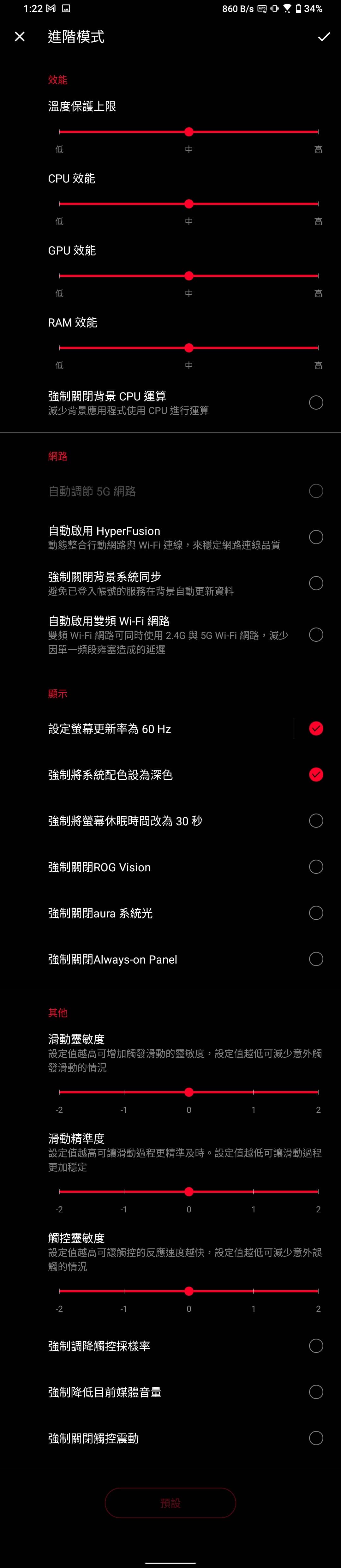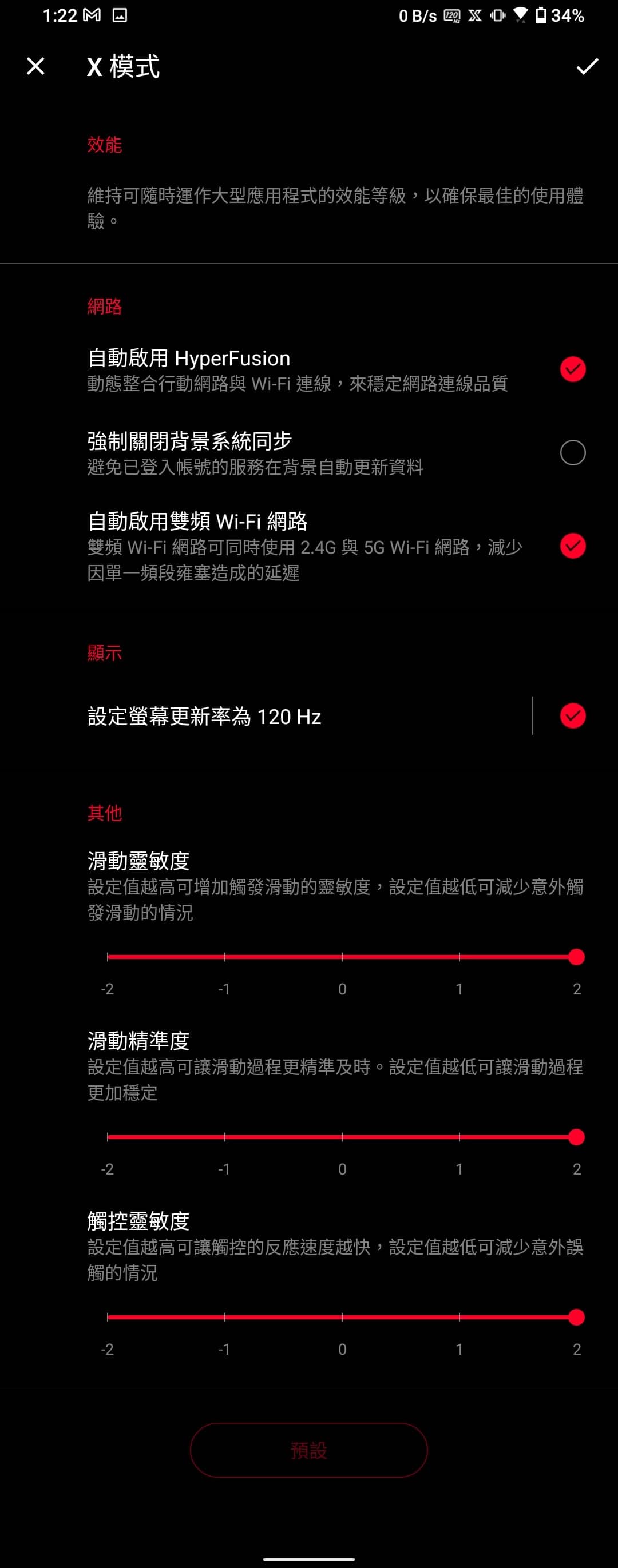 ▲ 使用者可以自行編輯「X 模式」開啟時的「效能」、「網路」、「顯示」、「其他」設定。