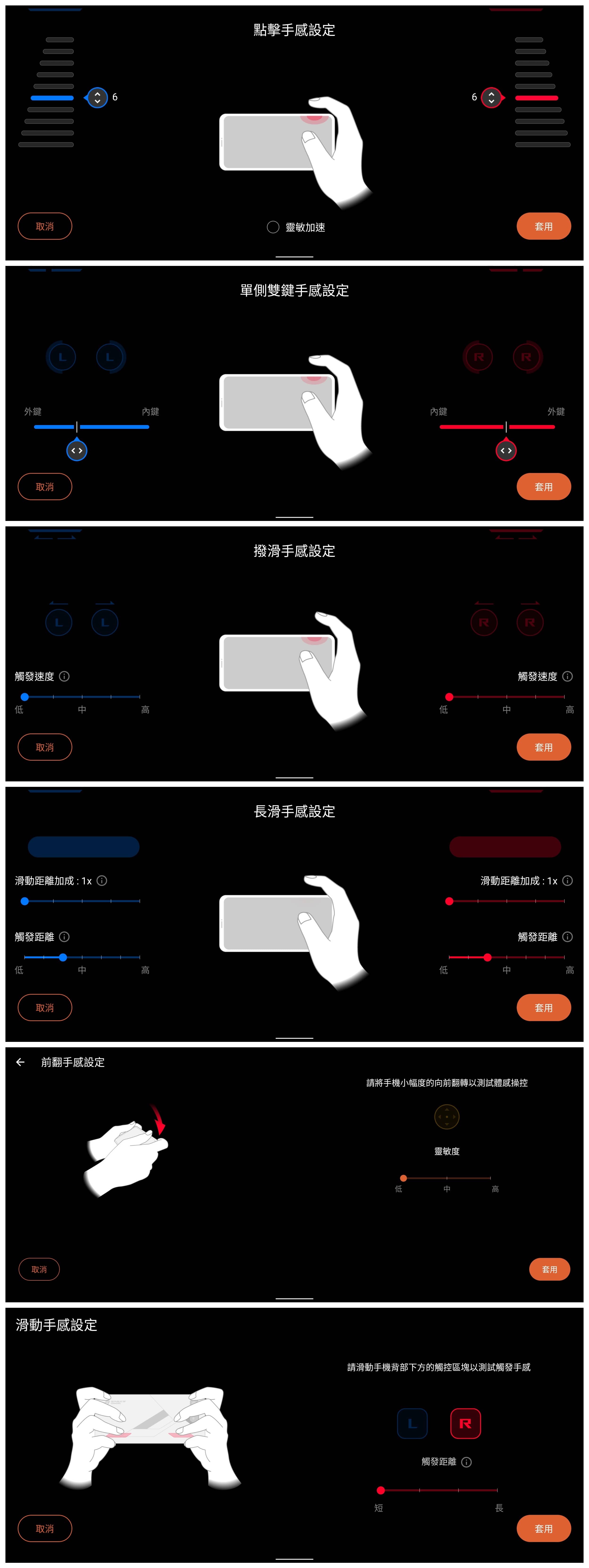▲ AirTrigger 在遊戲使用上的可玩性就高非常多了,從最基本的「點擊」,到「單側雙鍵」、「撥滑」、「長滑」、「體感控制」、「背面滑動」,假如你能夠熟悉這整套的操作流程,應該能讓遊戲體驗大大加分。