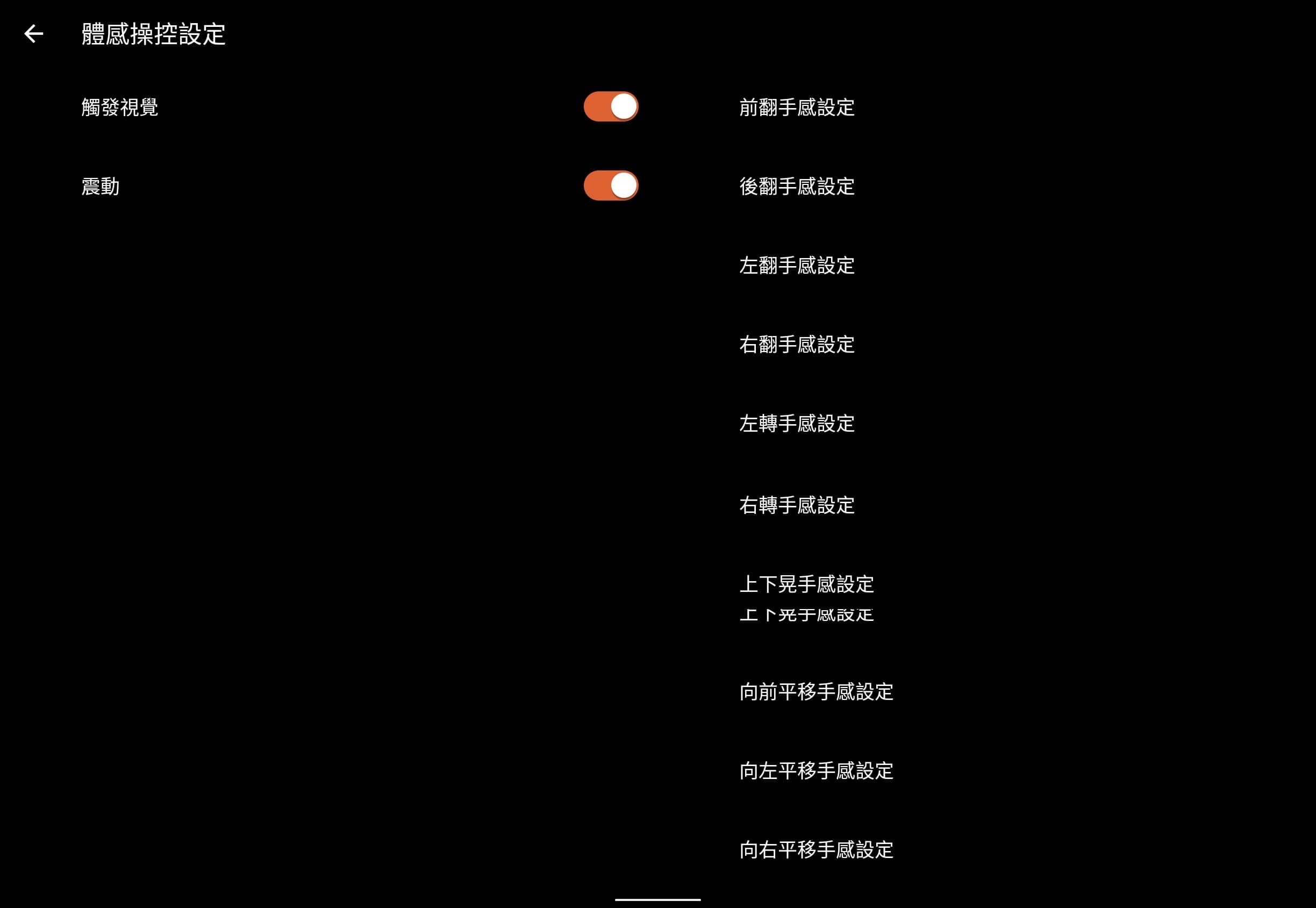 ▲ 5s Pro 多了很多「體感操控」的方式,目前有「前翻」、「後翻」、「左翻」、「右翻」、「左轉」、「右轉」、「上下晃」、「向前平移」、「向左平移」、「向後平移」共十種,不過因為只在特定角度會有反應,建議你實際使用前要先摸索、習慣一下。