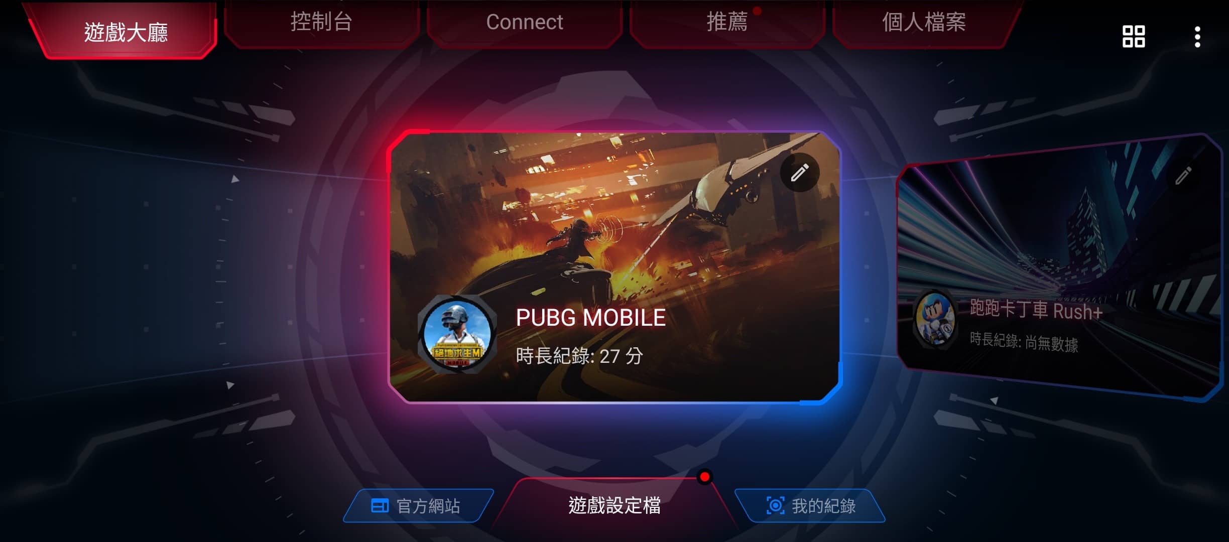 ▲ 打開「Armoury Crate」之後,首先會進入「遊戲大廳」的頁面,在這邊可以看到你所有的遊戲,並各別設定它們的參數。