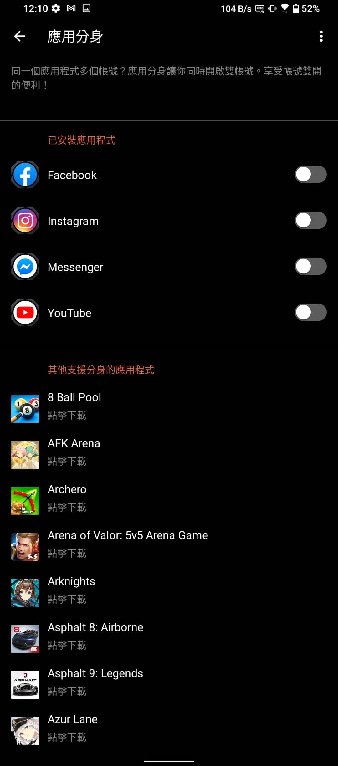 ▲ 手機一樣有內建「應用分身」的功能,就連遊戲都可以使用,對於同時有多個遊戲帳號的使用者很實用。