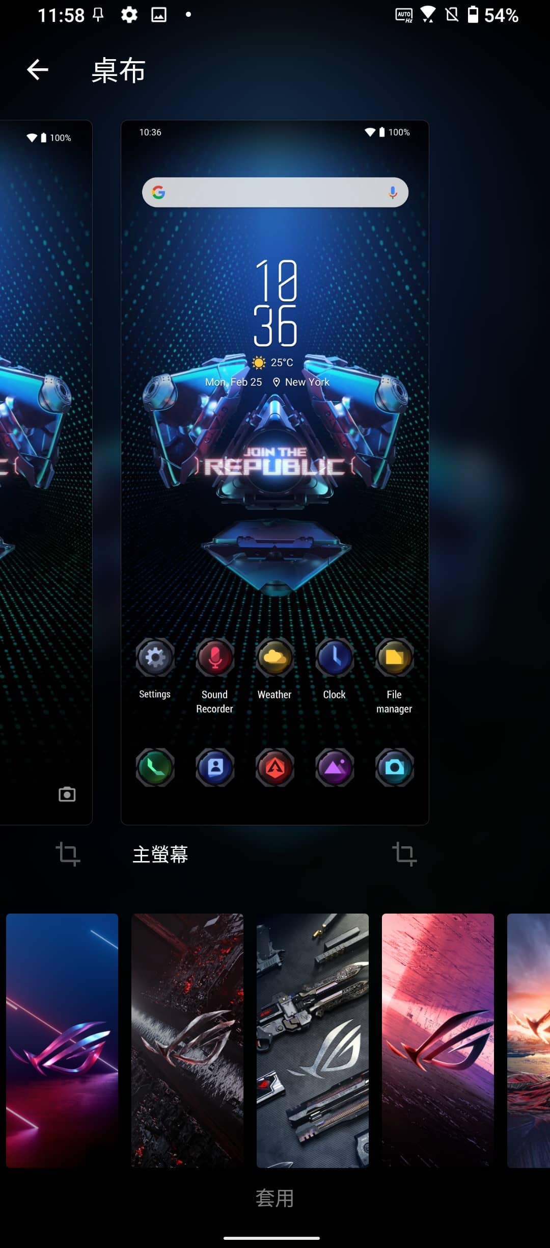 ▲ 手機內建了多套 ROG 準備的靜態、動態桌布。