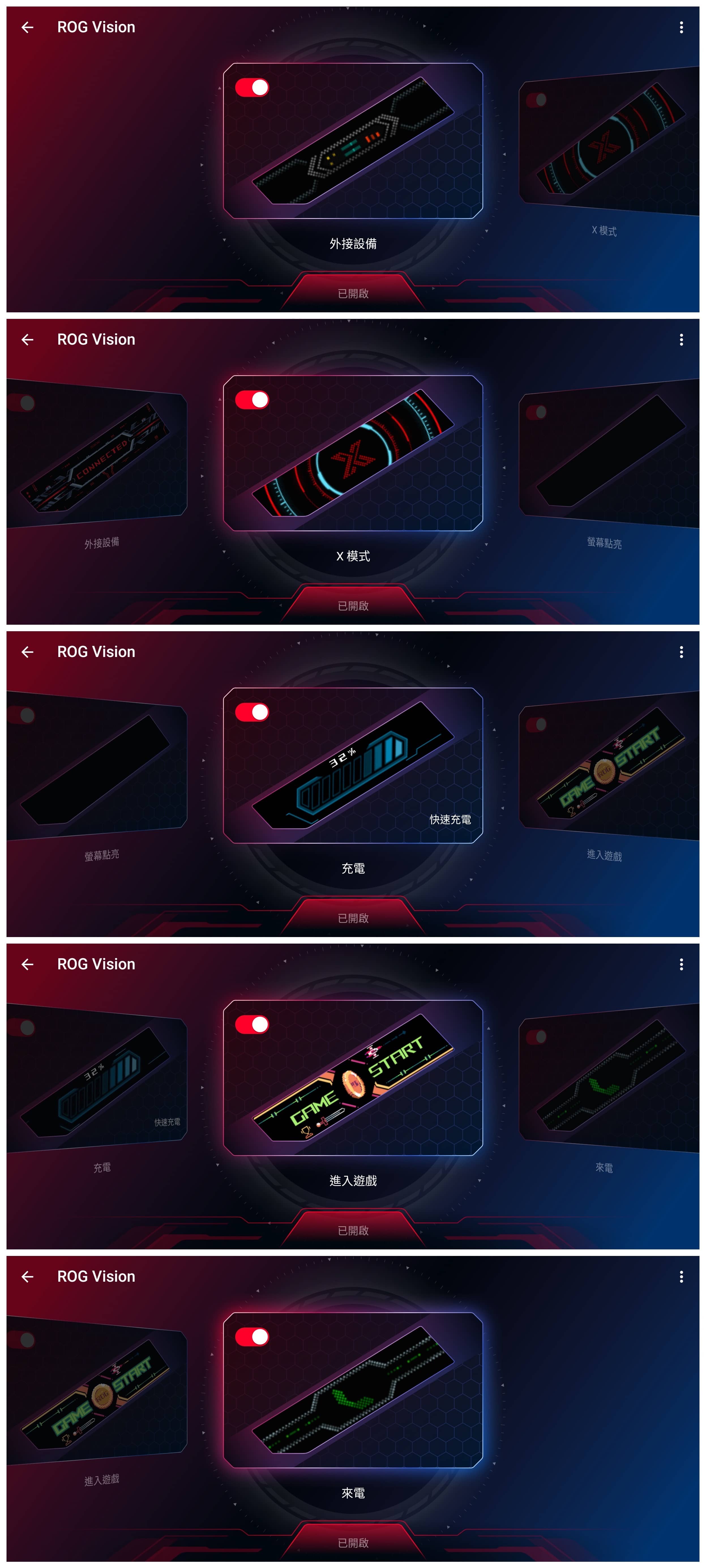 ▲ 「ROG 幻視螢幕」有許多預設的情境,包括充電、進入遊戲、來電…等等。